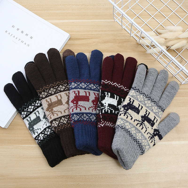 가을과 겨울 터치 스크린 따뜻한 5 손가락 니트 장갑 남성과 여성의 두꺼운 방풍 모직 장갑스토어 가기