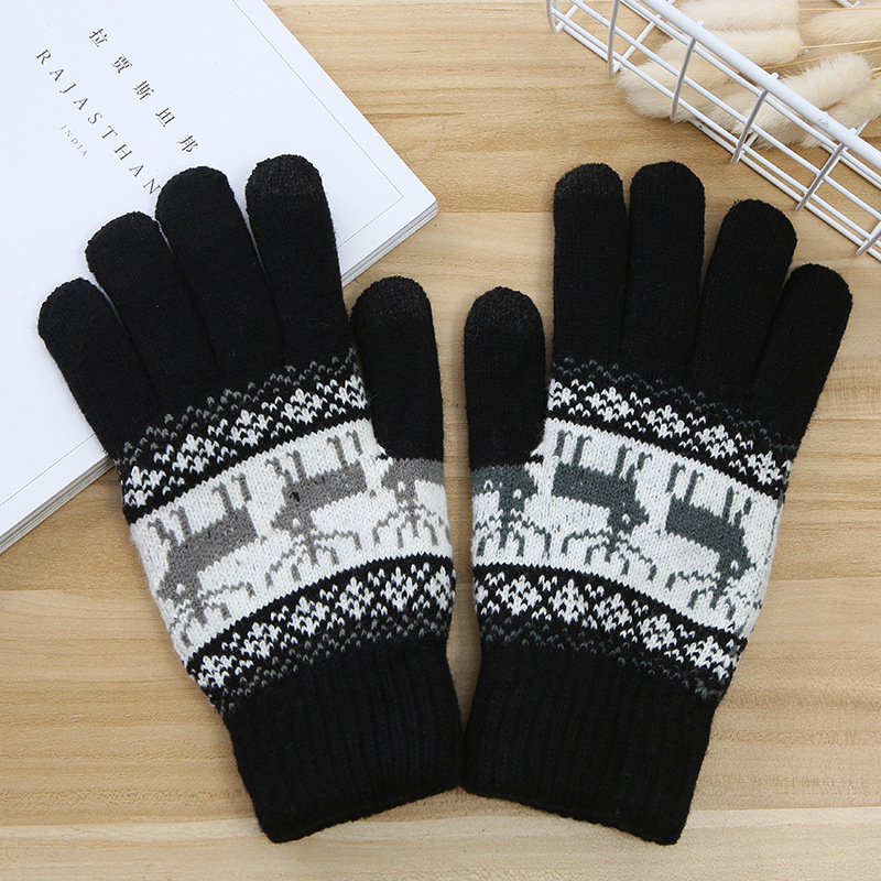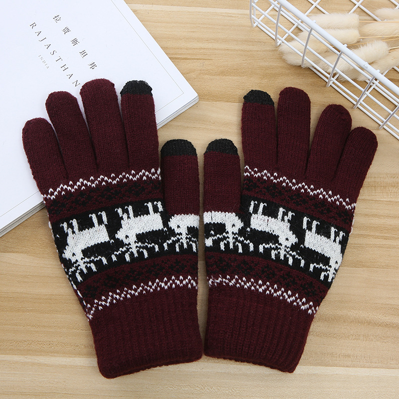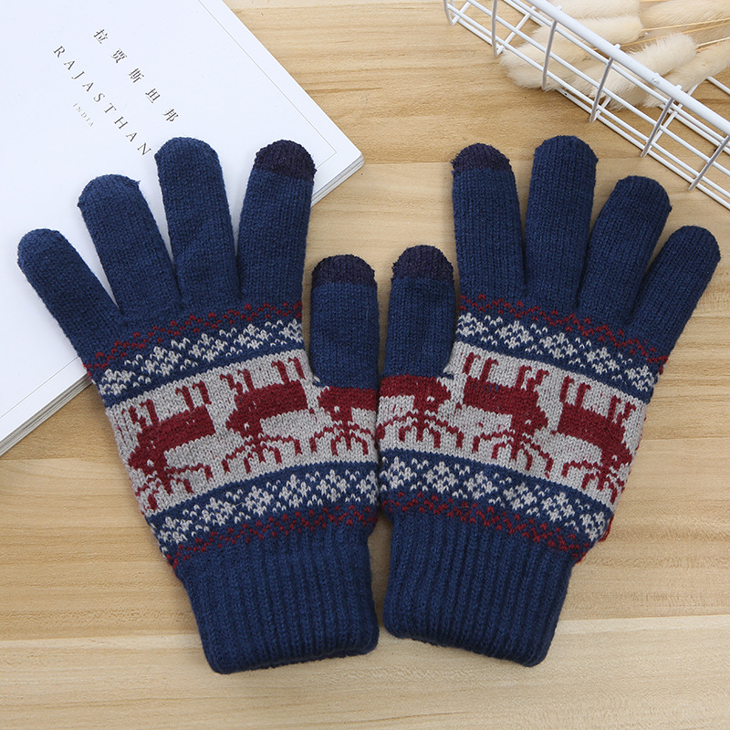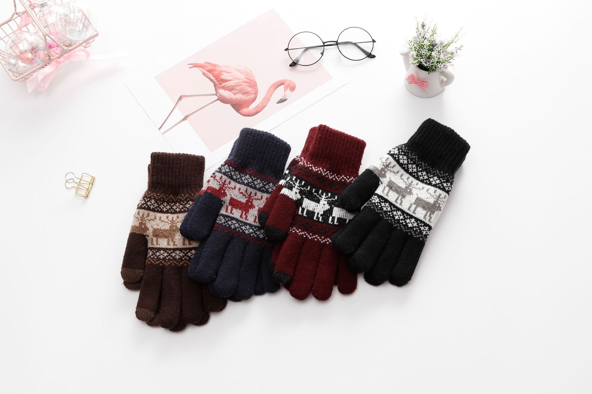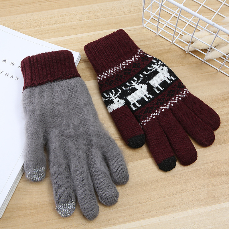 가을과 겨울 터치 스크린 따뜻한 5 손가락 니트 장갑 남성과 여성의 두꺼운 방풍 모직 장갑