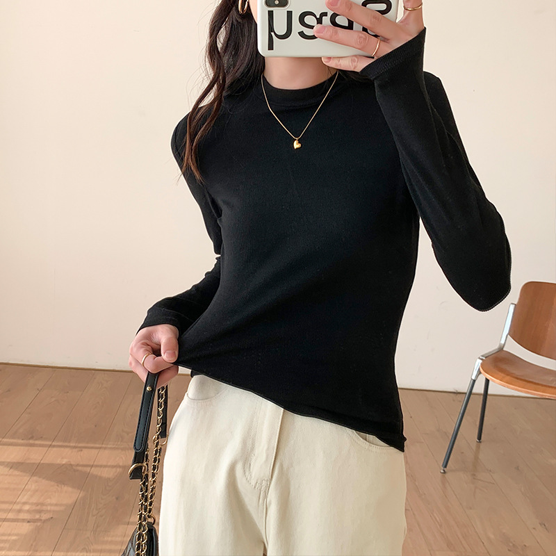 긴팔 이너웨어 여성용 봄 가을 정장 이너웨어 2025 신상 슬림핏 화이트 티셔츠 여성용 라운드넥 상의