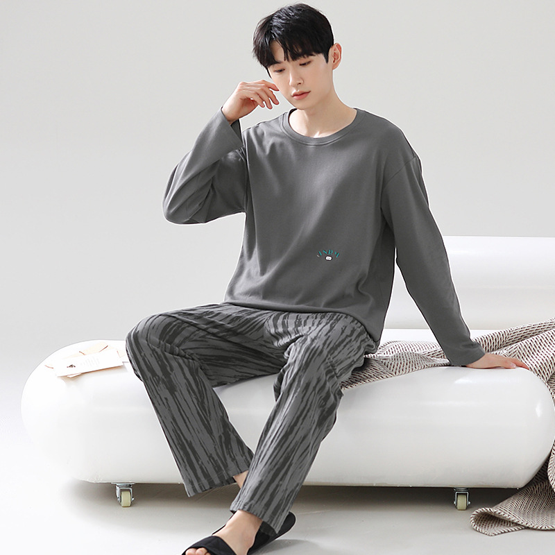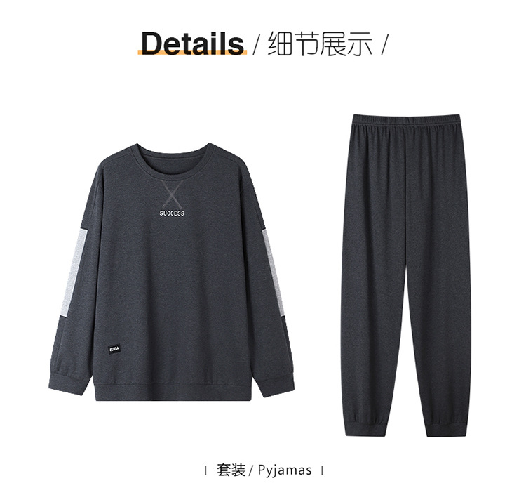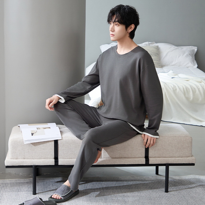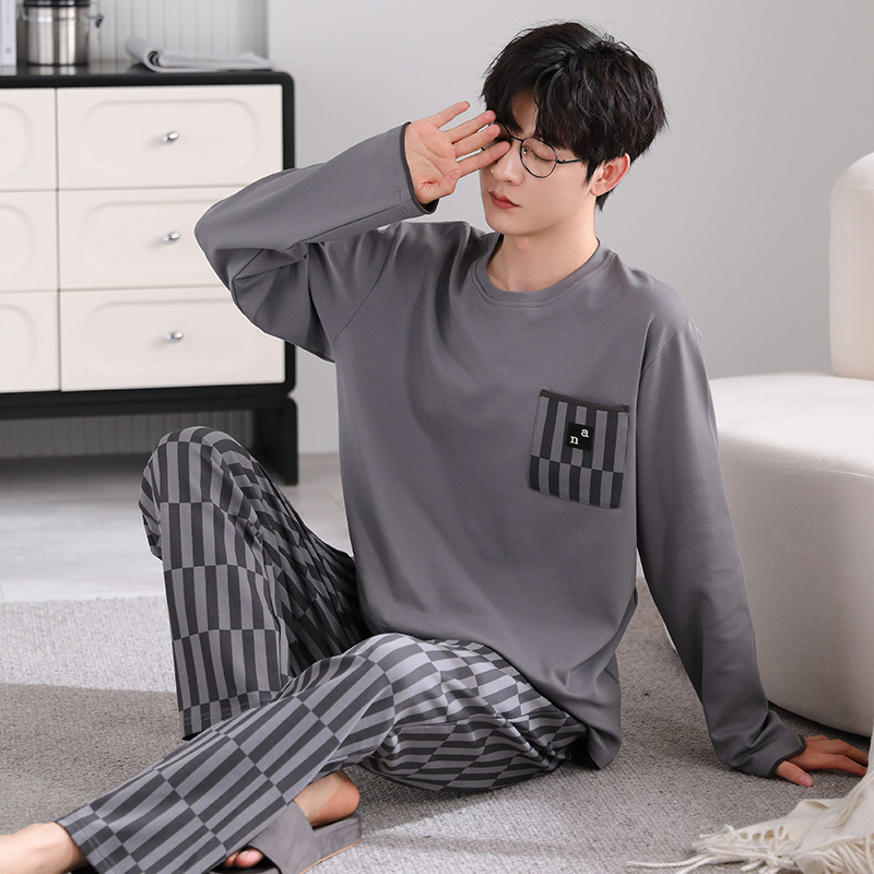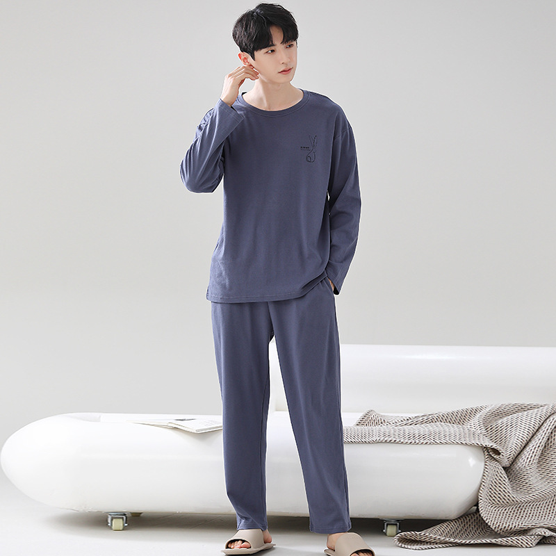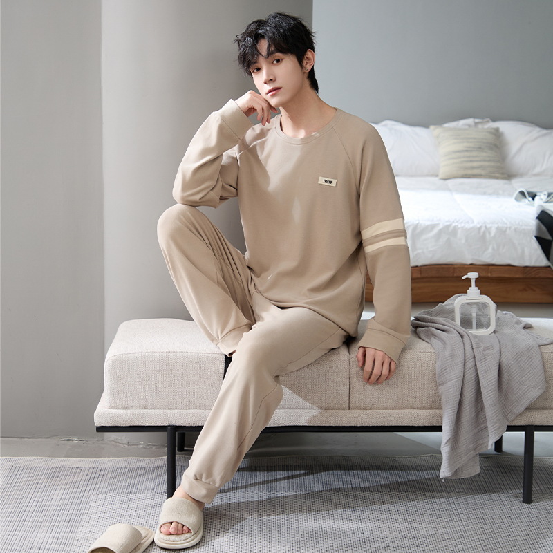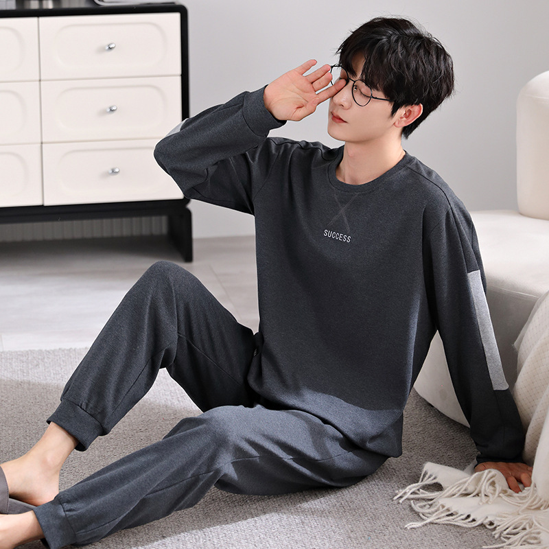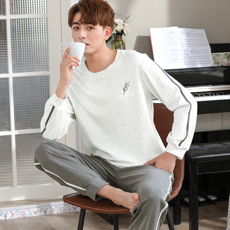 남성용 플러스 사이즈 100% 면 잠옷, 가을 겨울 순면 긴팔 라운드 넥, 피부 친화적인 학생용 아우터웨어, 봄 가을 홈웨어 세트스토어 가기