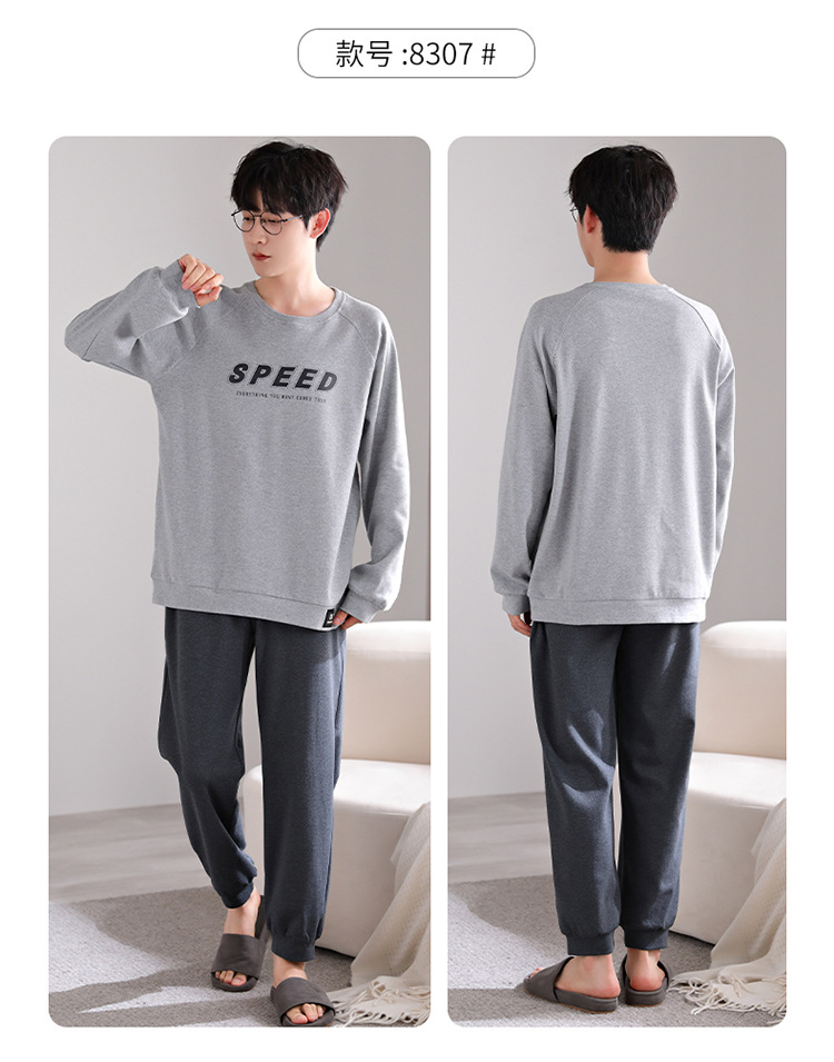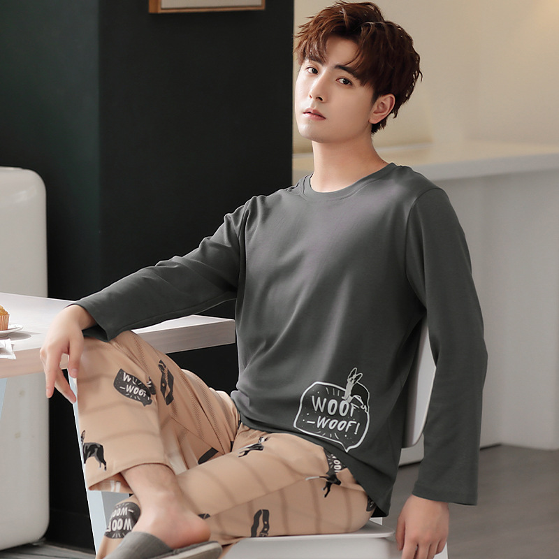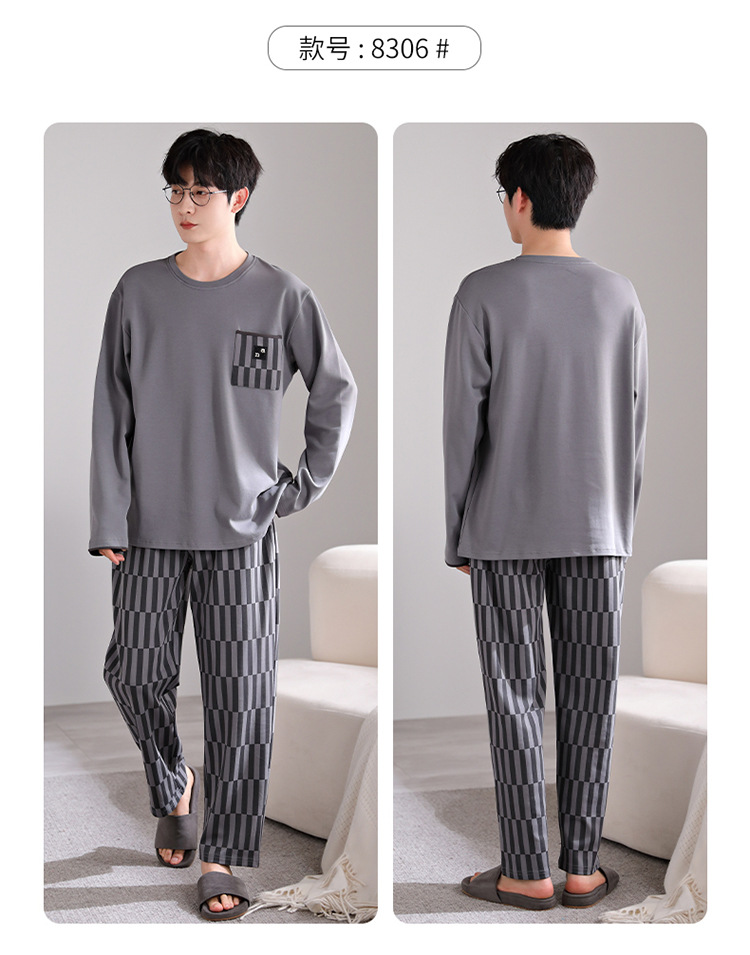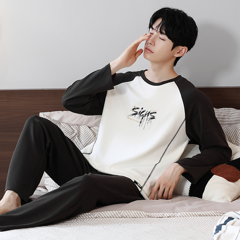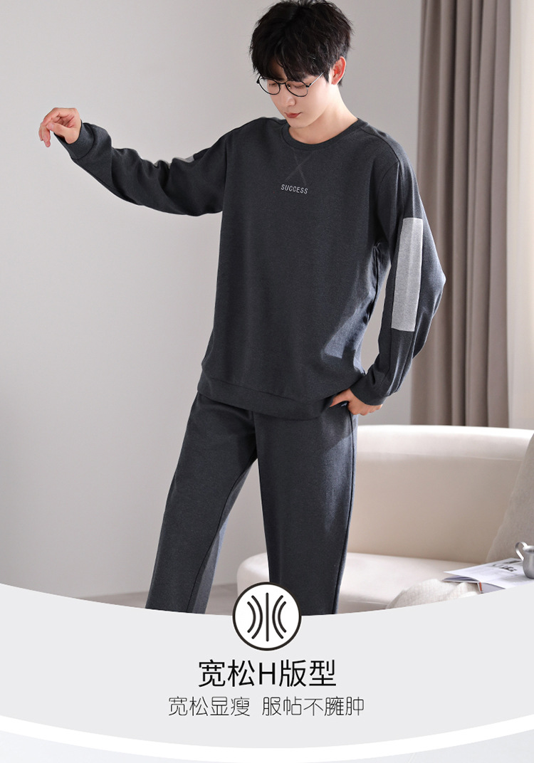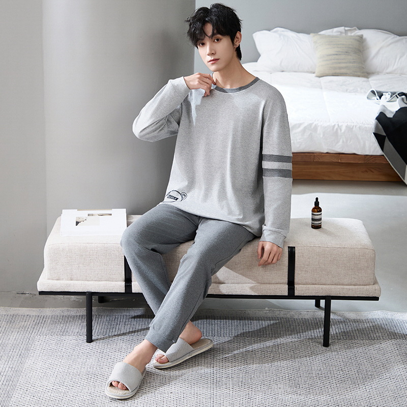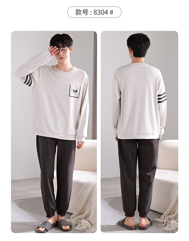남성용 플러스 사이즈 100% 면 잠옷, 가을 겨울 순면 긴팔 라운드 넥, 피부 친화적인 학생용 아우터웨어, 봄 가을 홈웨어 세트스토어 가기