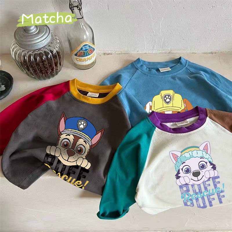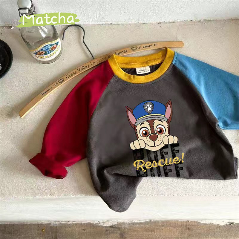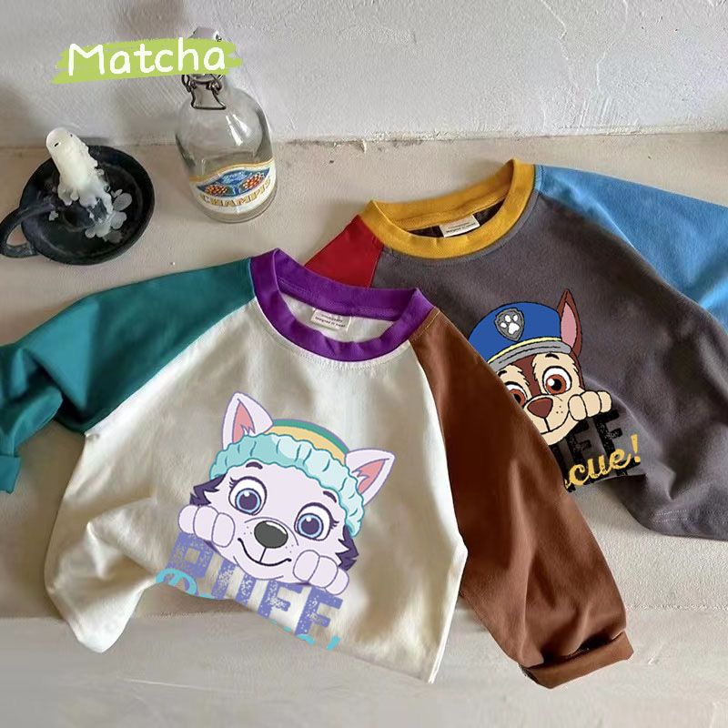 어린이 긴팔 티셔츠 2023 봄과 가을 새 소년과 소녀 한국식 만화 색상 매칭 라글란 소매 크루 넥베이스 셔츠스토어 가기