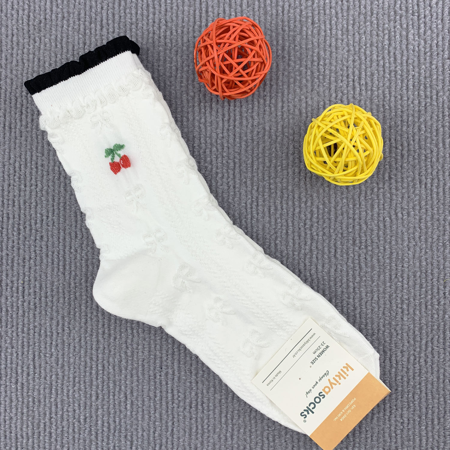 WC305 캐주얼 양말 한국 동대문 벚꽃 양각 보우 심플 레이스 여성용 미드 튜브 양말스토어 가기