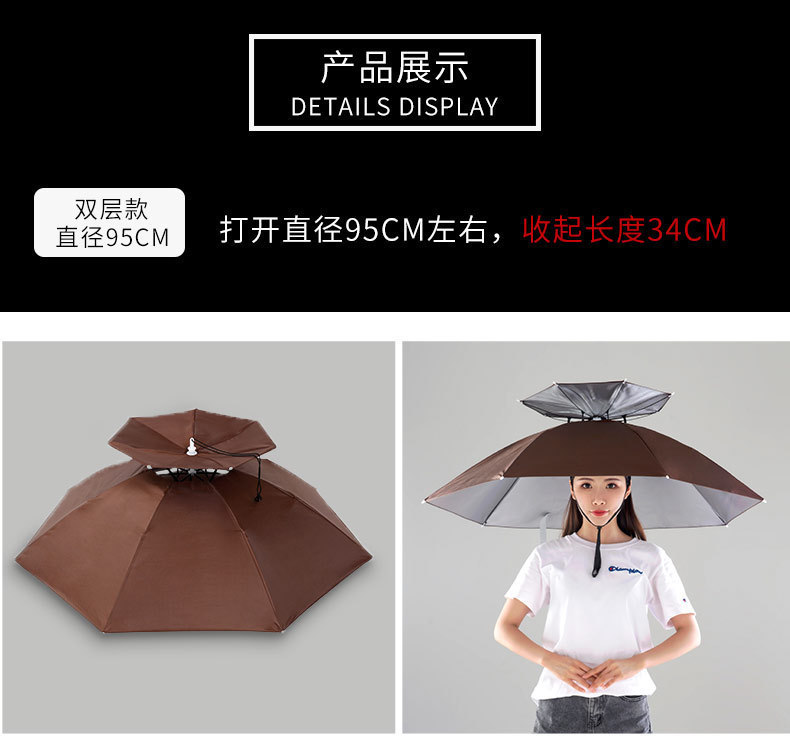 머리 장착 우산 모자 야외 검은 접착제 햇빛 햇빛과 비 이중 목적 우산 낚시 차 따기 대형 휴대용 방비 후드 우산 모자스토어 가기