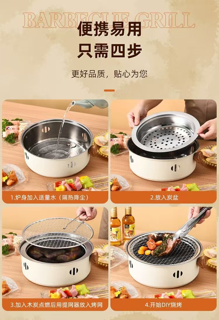 야외 캠핑용 차 끓이기용 화로 원형 가정용 정원 스테인리스 숯불 휴대용 피크닉 바베큐 그릴스토어 가기