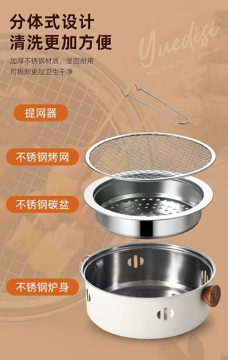 야외 캠핑용 차 끓이기용 화로 원형 가정용 정원 스테인리스 숯불 휴대용 피크닉 바베큐 그릴