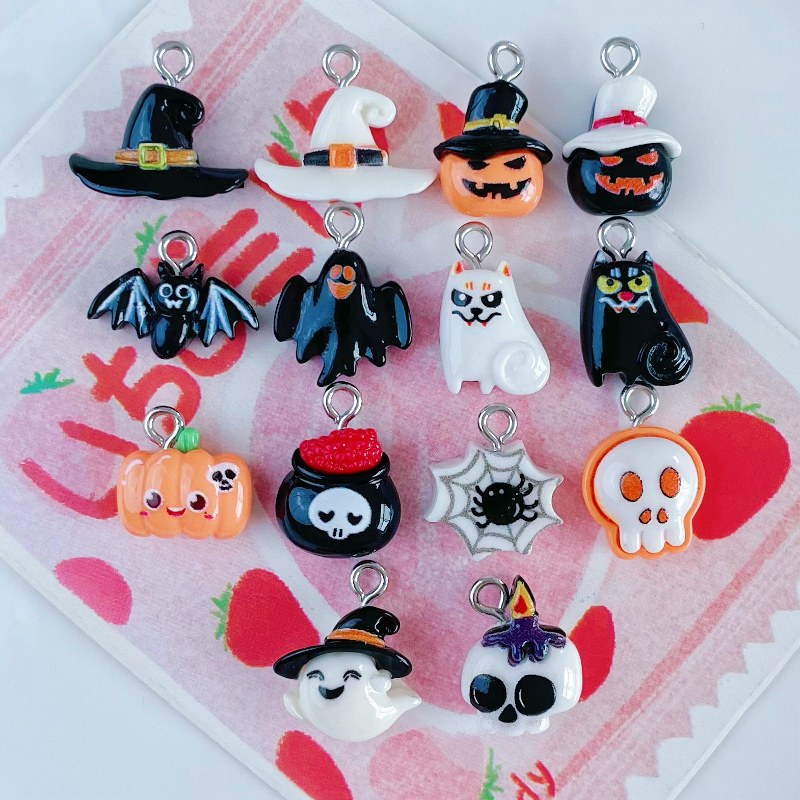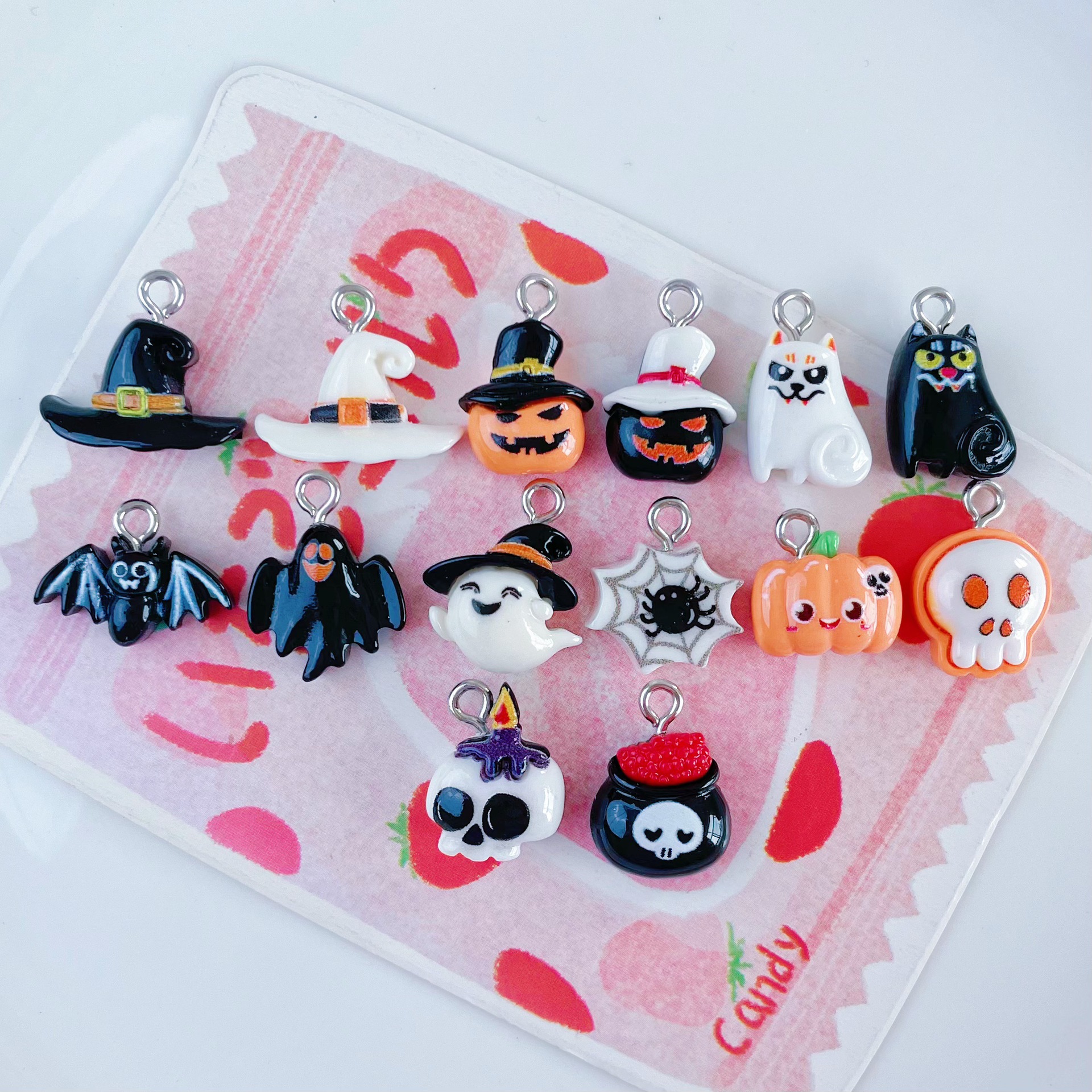 미니 할로윈 악마 호박 두개골 유치한 DIY 액세서리 펜던트 펜던트 키 체인 장식스토어 가기