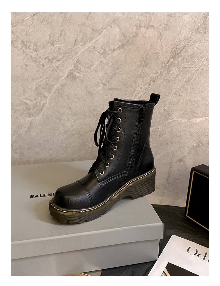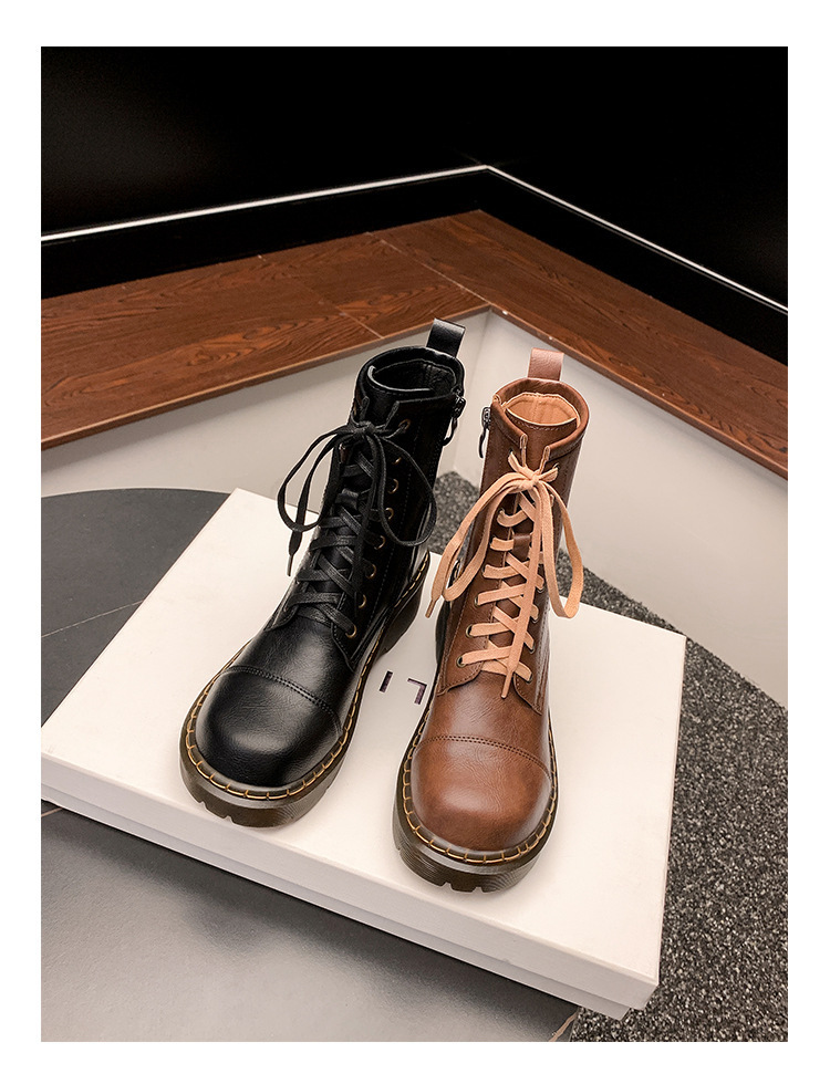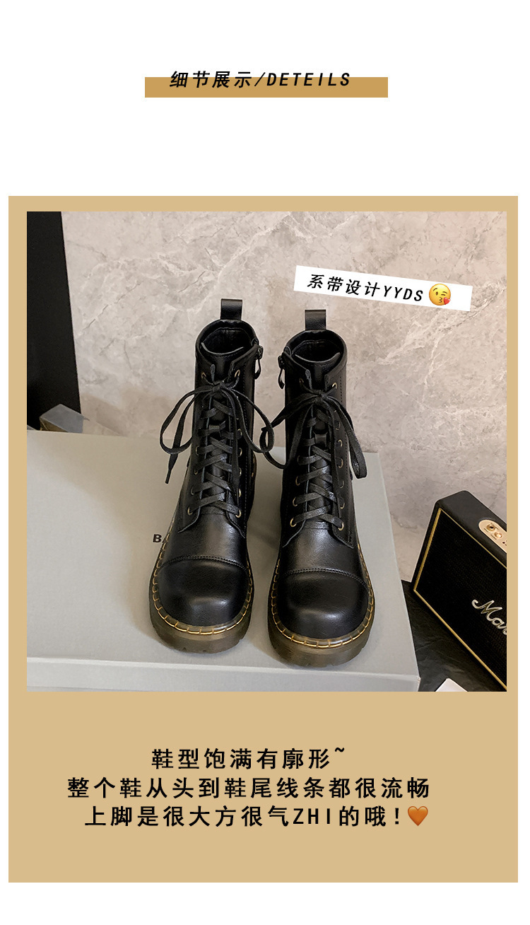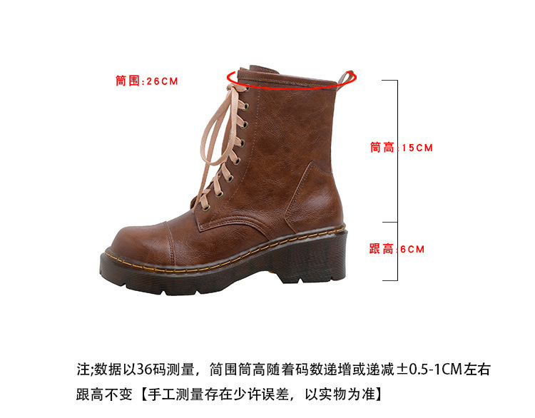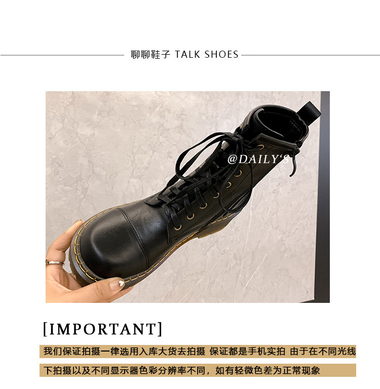 레이스업 숏부츠, 천연가죽, 패셔너블한 신상 마틴부츠, 여성용 두꺼운 굽, 작은 사이즈 가을겨울 가죽부츠, 영국풍 복고 인터넷 연예인스토어 가기