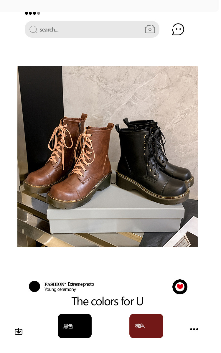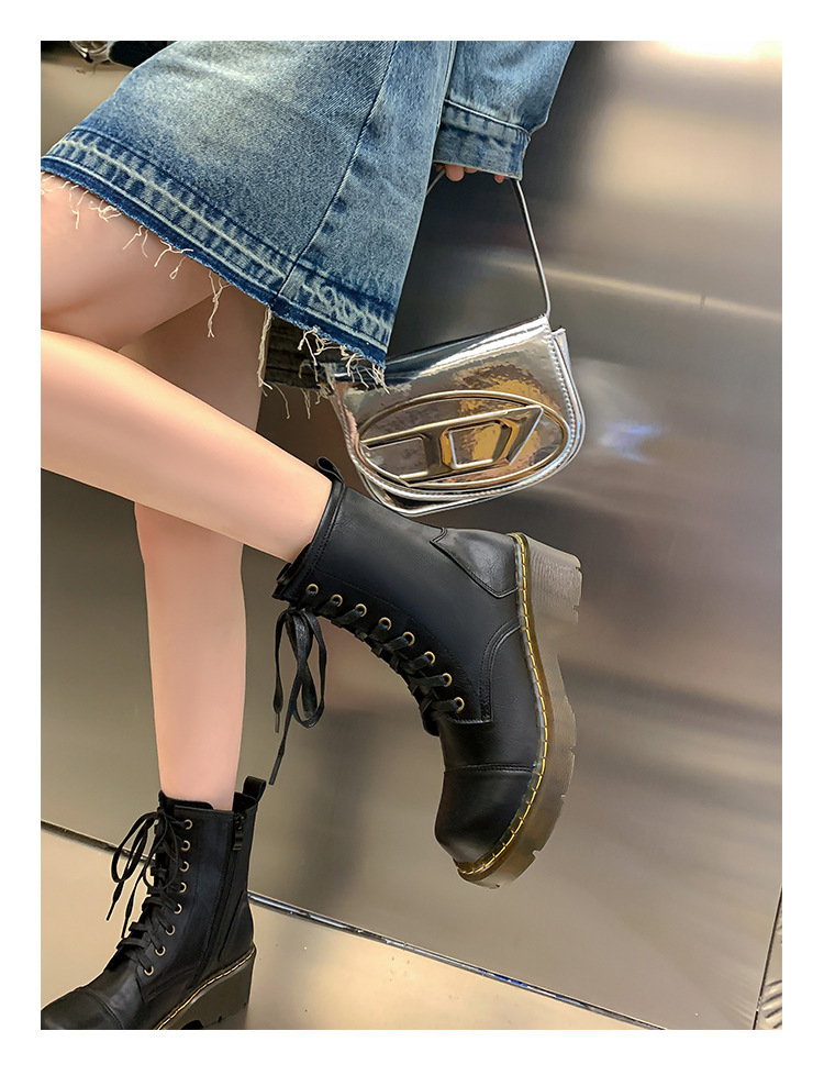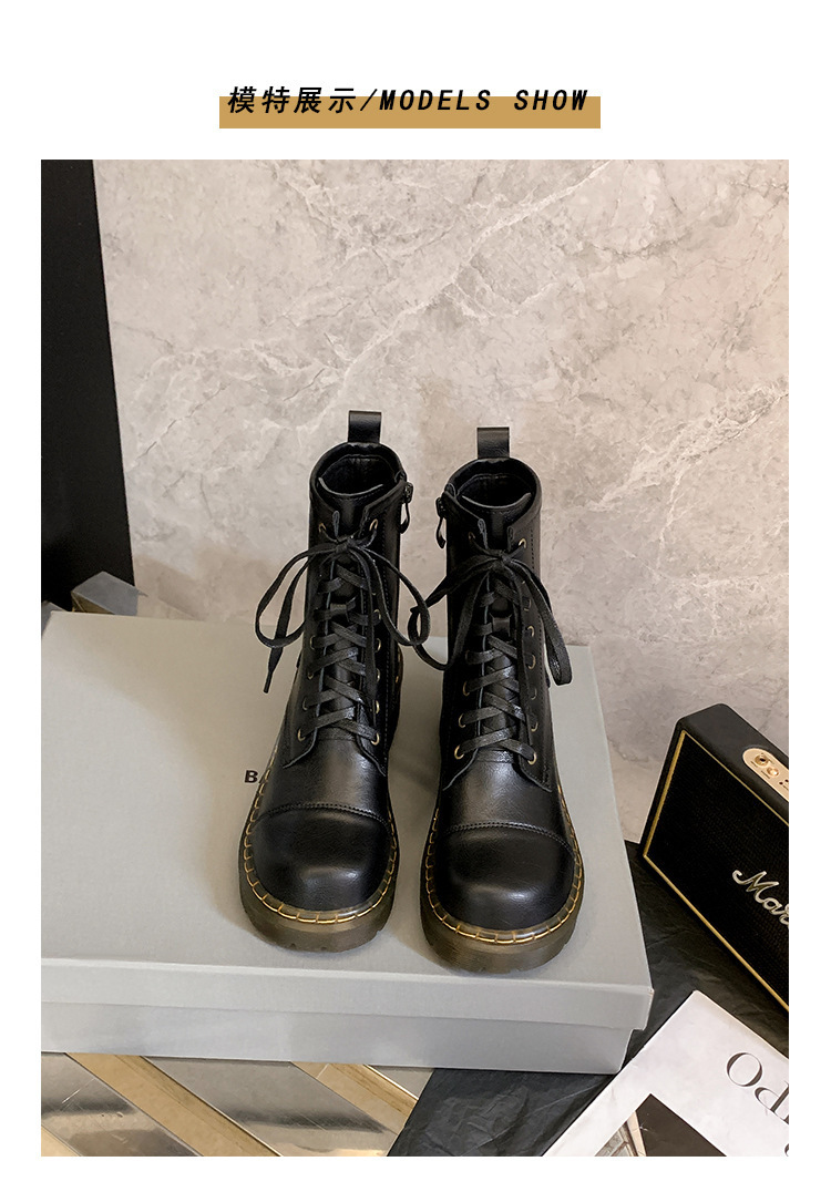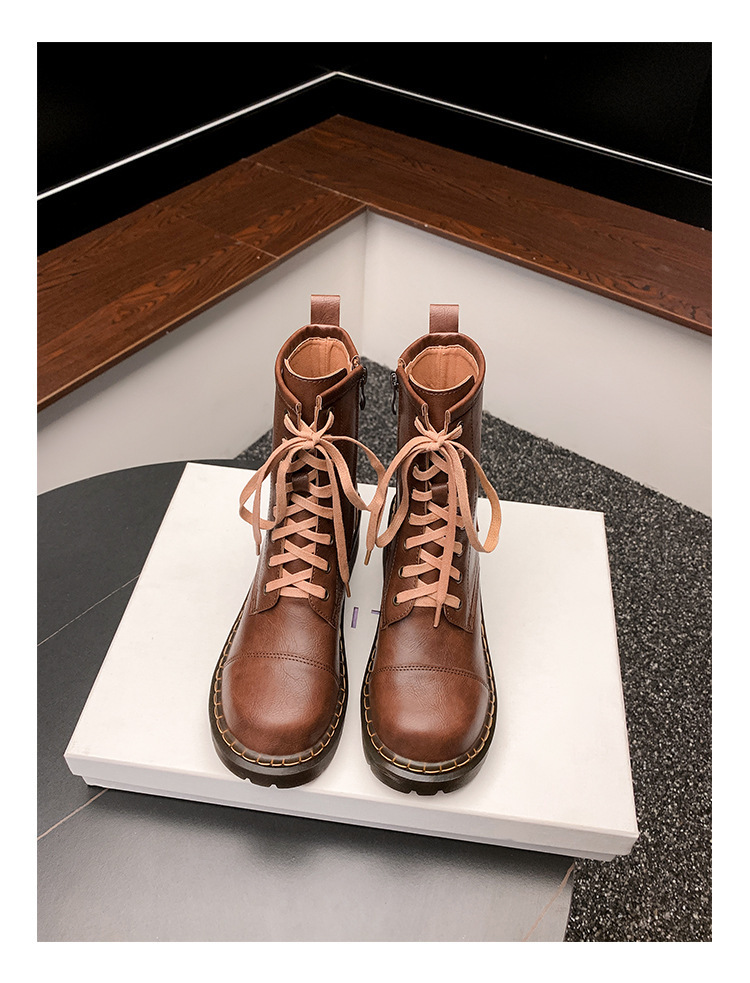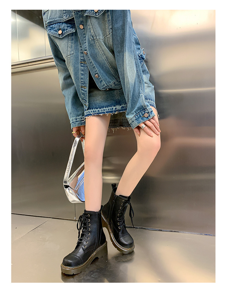 레이스업 숏부츠, 천연가죽, 패셔너블한 신상 마틴부츠, 여성용 두꺼운 굽, 작은 사이즈 가을겨울 가죽부츠, 영국풍 복고 인터넷 연예인스토어 가기