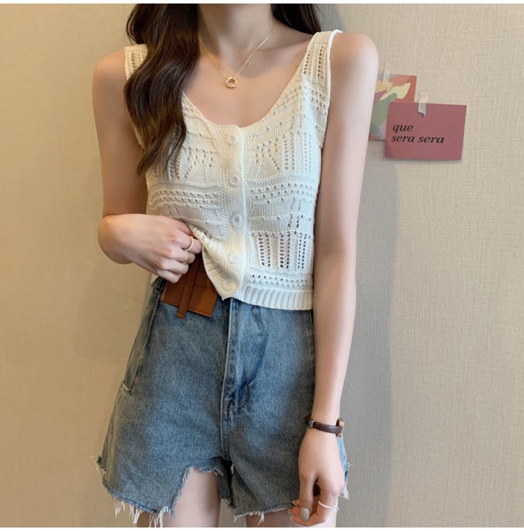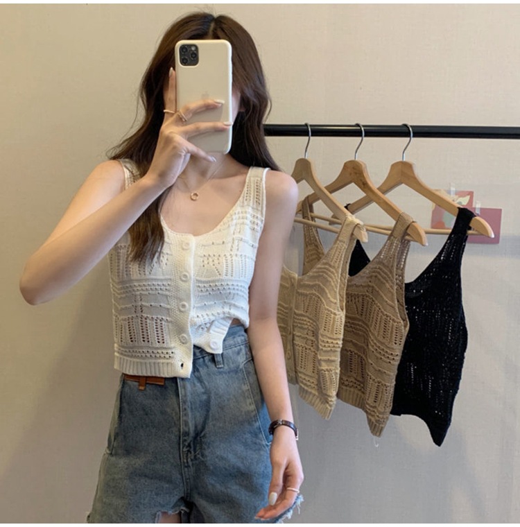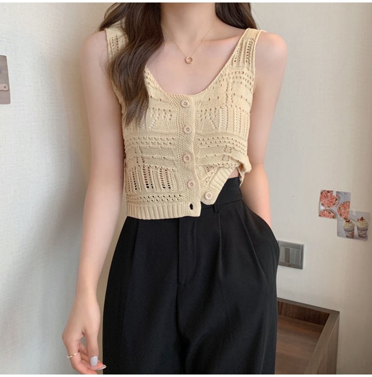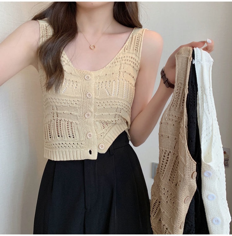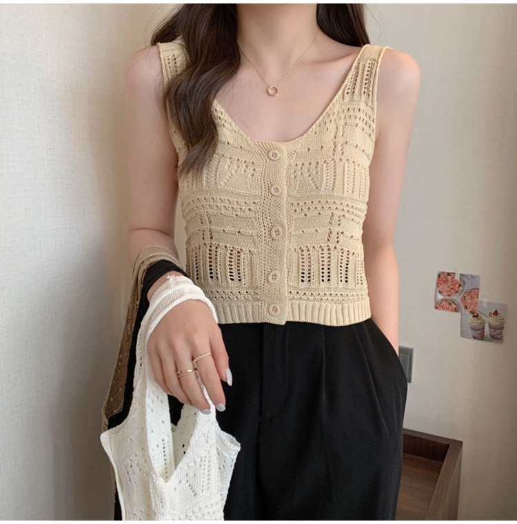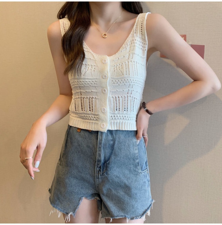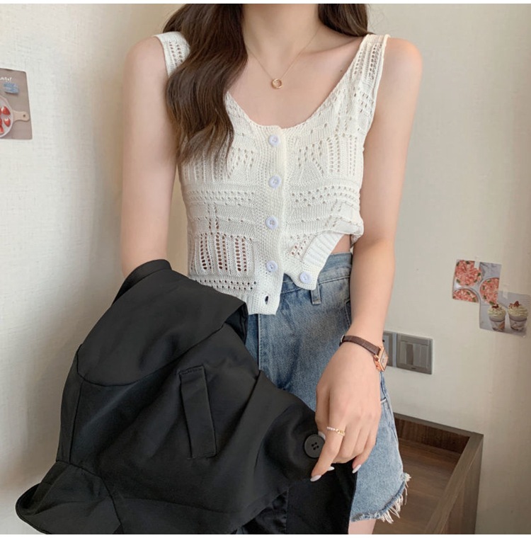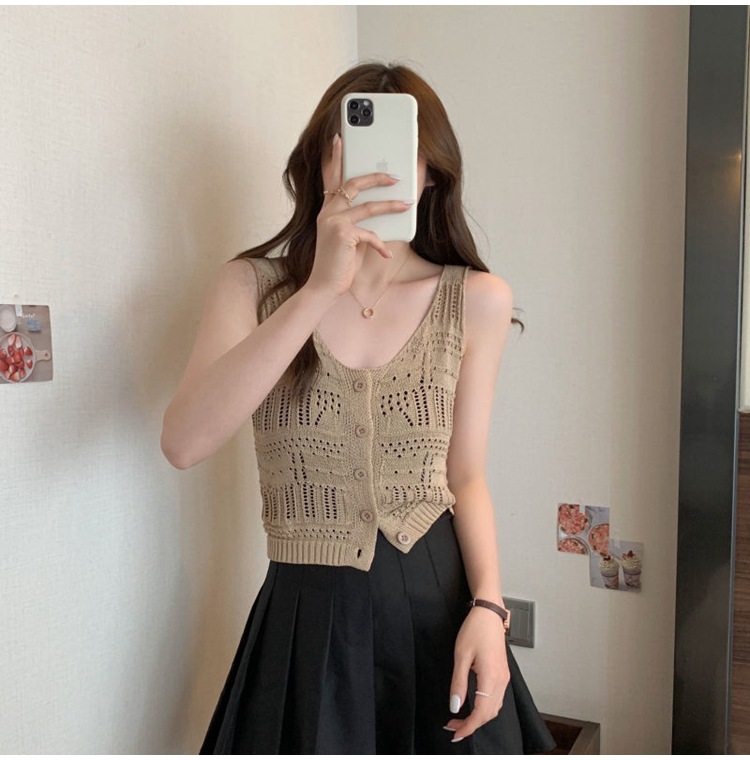 2024 새로운 스타일 카디건 탑 트렌디 니트 할로우 민소매 카미 솔 여성 짧은 버전 배꼽 슬리밍 올 매치 아우터웨어스토어 가기