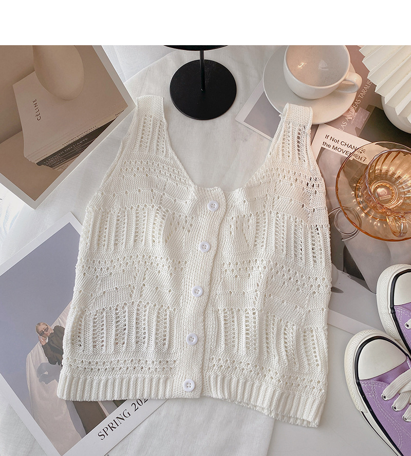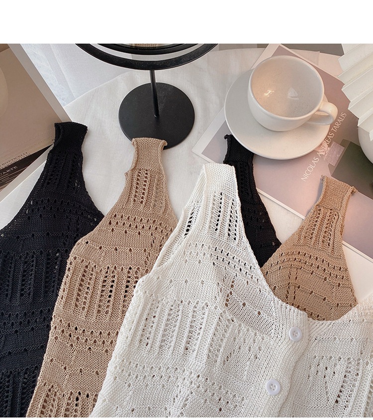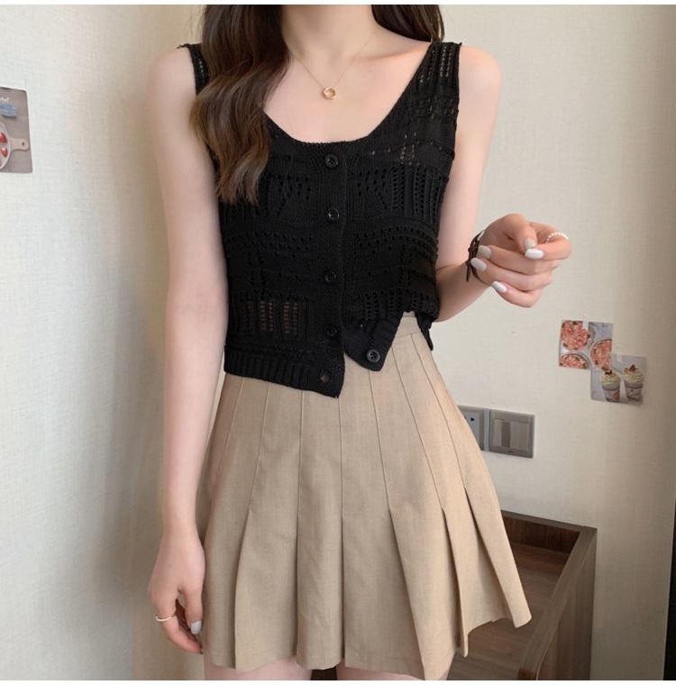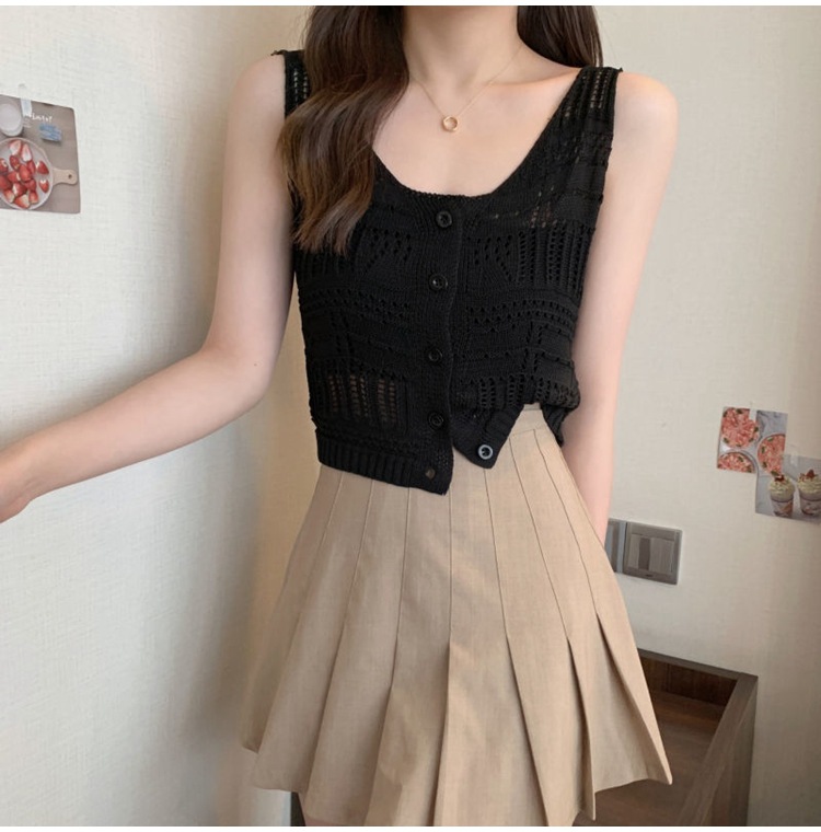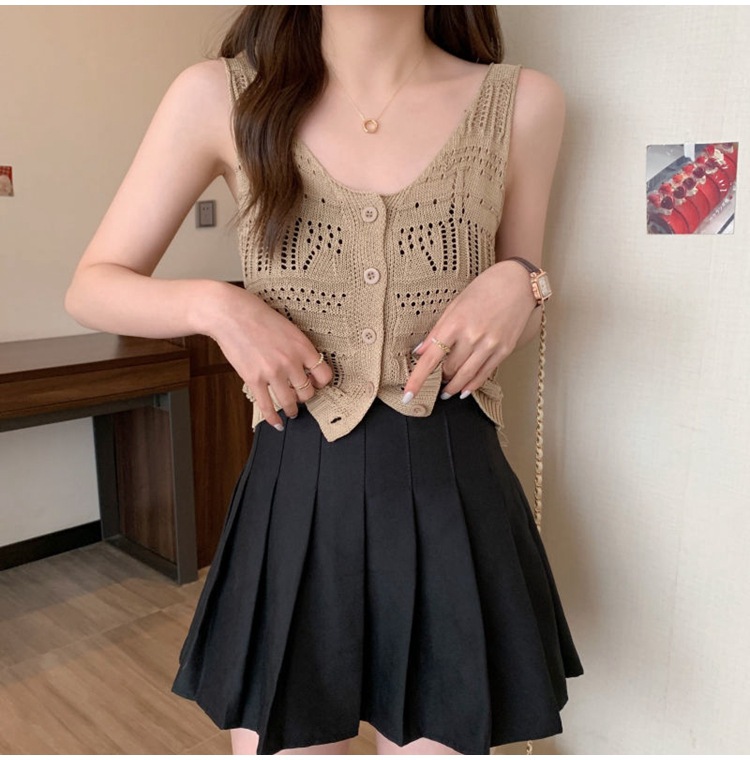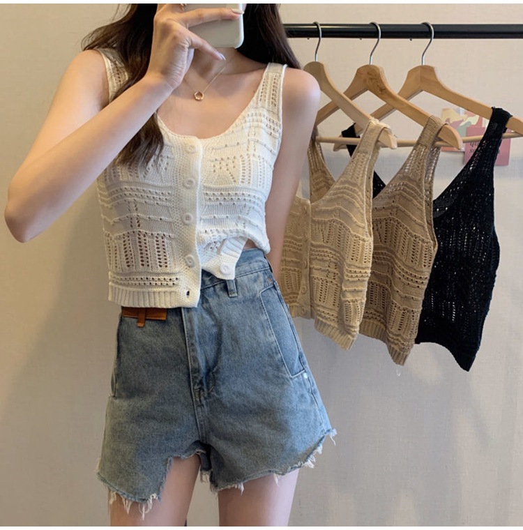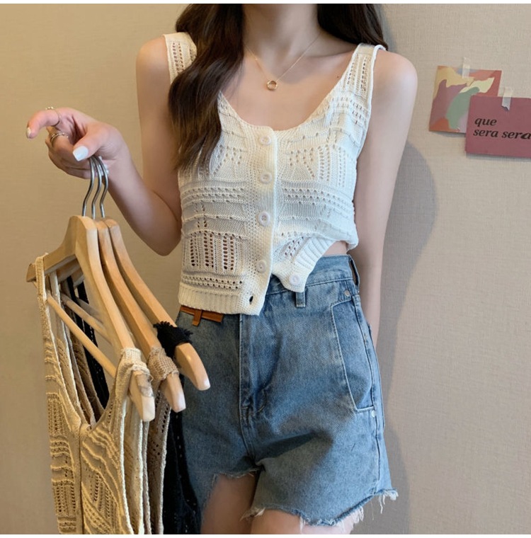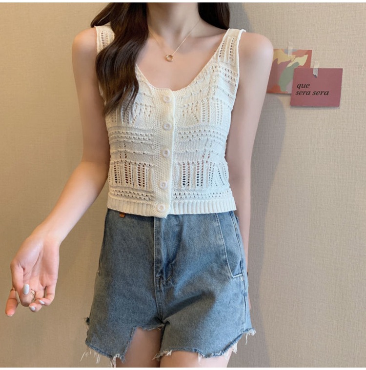 2024 새로운 스타일 카디건 탑 트렌디 니트 할로우 민소매 카미 솔 여성 짧은 버전 배꼽 슬리밍 올 매치 아우터웨어스토어 가기