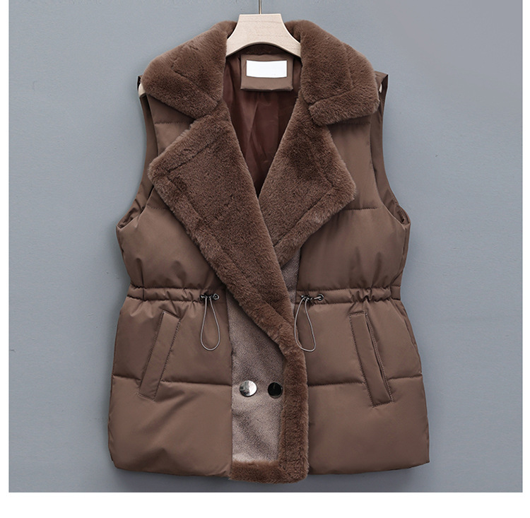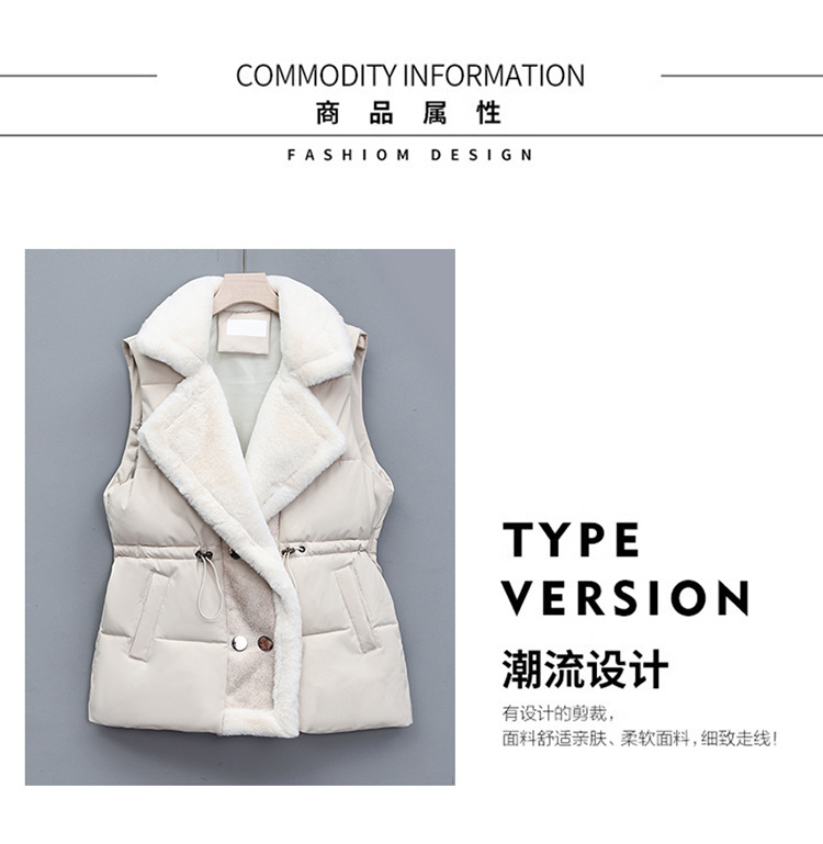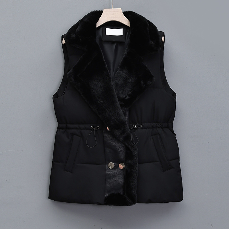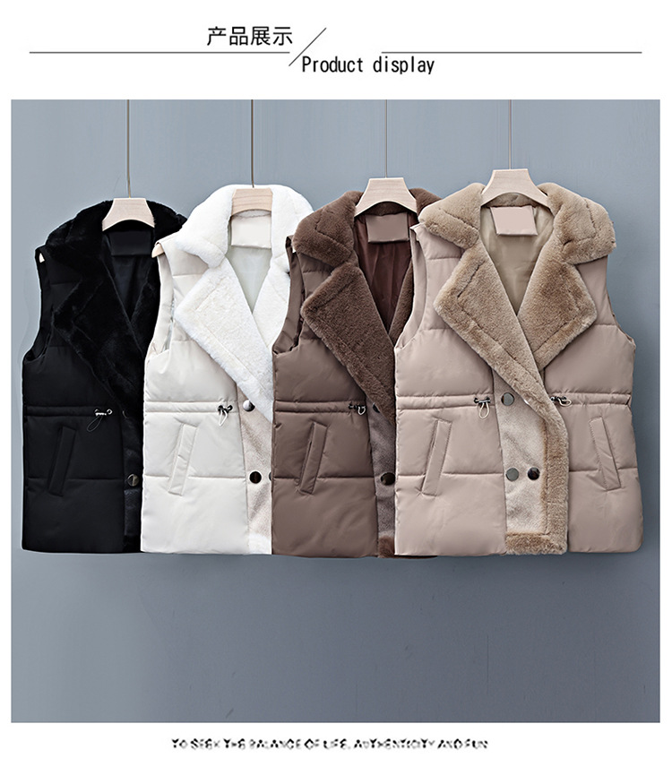 가죽과 솜이 통합된 여성용 다운 코튼 조끼, 허리를 잘록하게 잡아주는 슈트 칼라 조끼, 2025년 가을 겨울 신상 코튼 조끼 자켓스토어 가기
