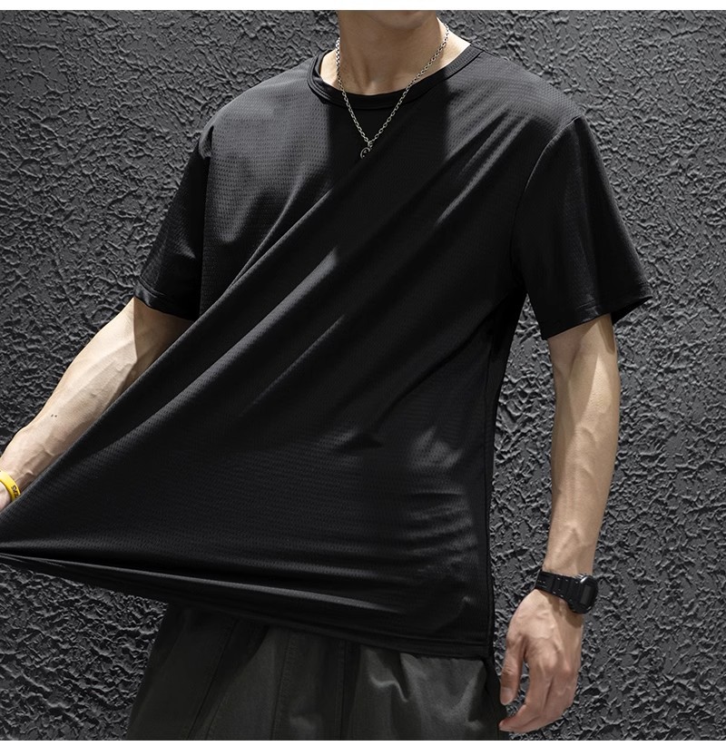 여름 플러스 사이즈 아이스 실크 남자의 반팔 느슨한 얇은 빠른 건조 셔츠 메쉬 T 스포츠 캐주얼 반소매 쿨 쇼트 T 남자스토어 가기