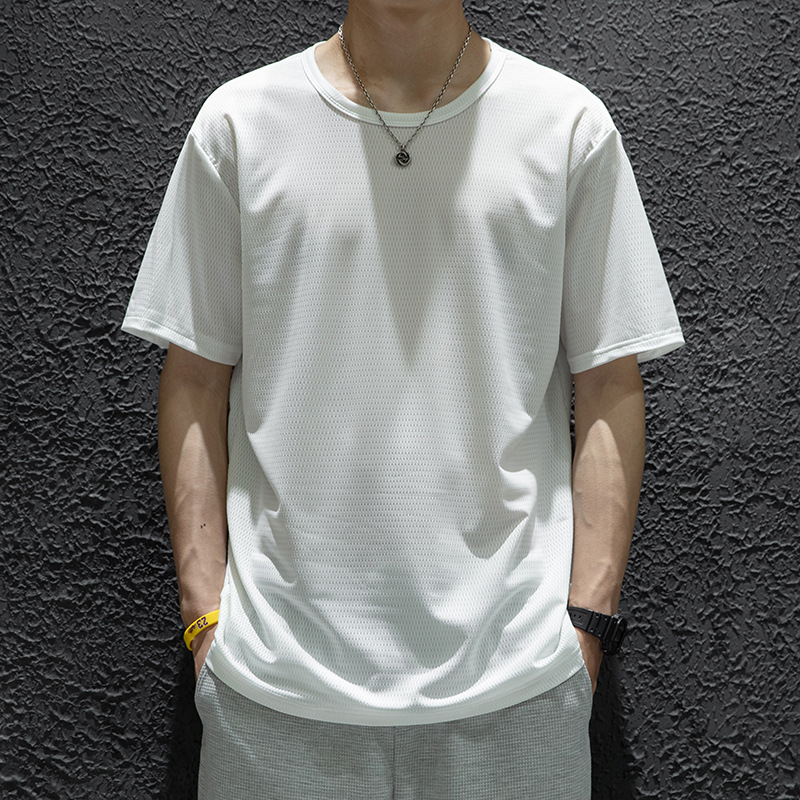여름 플러스 사이즈 아이스 실크 남자의 반팔 느슨한 얇은 빠른 건조 셔츠 메쉬 T 스포츠 캐주얼 반소매 쿨 쇼트 T 남자