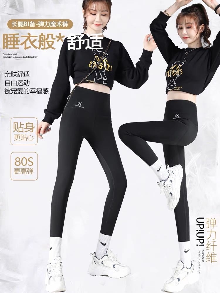 두꺼운 상어 바지 착용 여성 높은 허리 슬림 핏 바지 배꼽 슬림 업그레이드 된 겨울 바비 요가 비행기 바지 3.스토어 가기