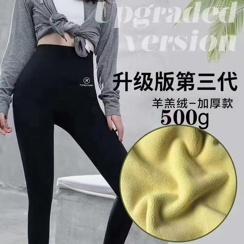두꺼운 상어 바지 착용 여성 높은 허리 슬림 핏 바지 배꼽 슬림 업그레이드 된 겨울 바비 요가 비행기 바지 3.