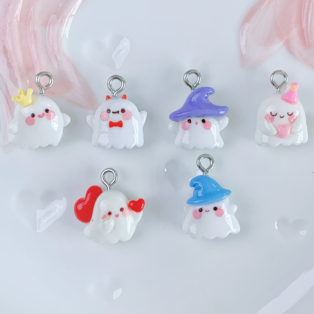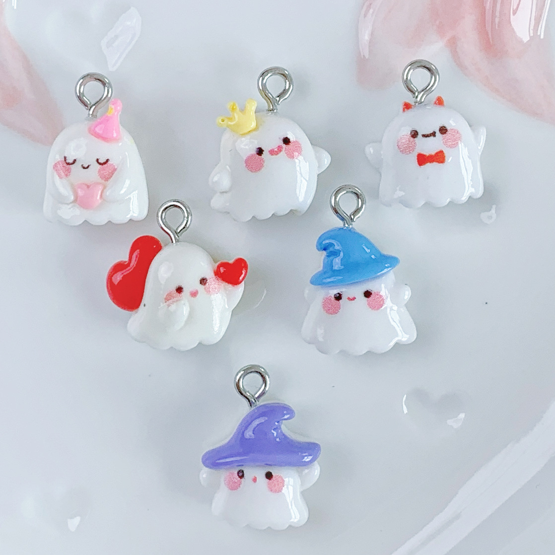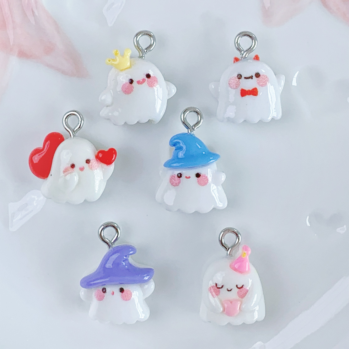 미니 광택 귀여운 유령 창조적 인 수제 DIY 보석 펜던트 펜던트 키 체인 장식 소재 배치
