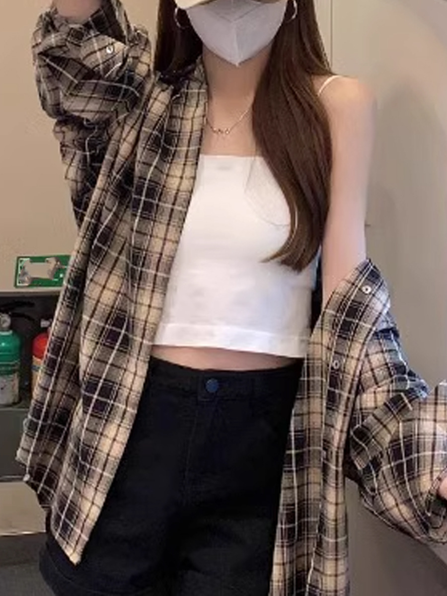 빈티지 영국 스타일 녹색 격자 무늬 셔츠 코트 여성의 봄과 가을 캐주얼 올 매치 느슨한 중간 길이 쌓인 셔츠스토어 가기
