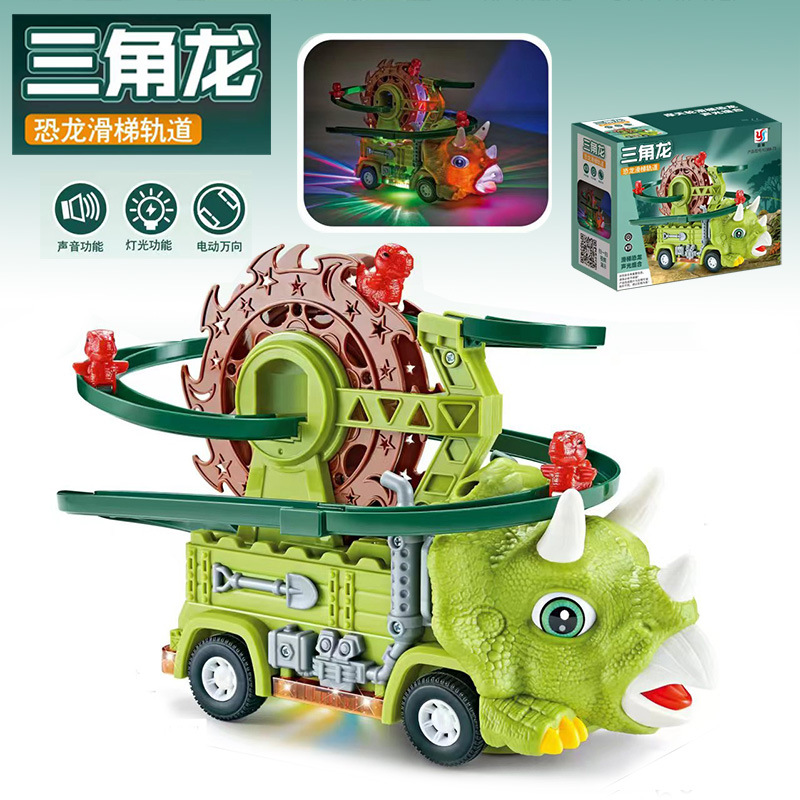 국경 간 Douyin 전기 유니버설 사운드 및 라이트 뮤직 티라노사우루스 렉스 관람차 철도 차량 등반 계단 어린이 교육 장난감스토어 가기