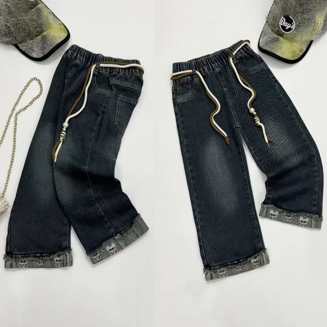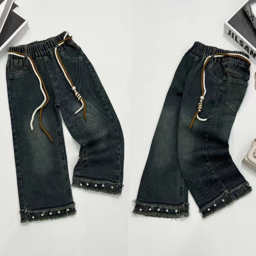 아동복 소년 청바지 스트레치 소녀 서양식 새로운 도착 와이드 다리 바지 어린이 유행 한국식 바지스토어 가기
