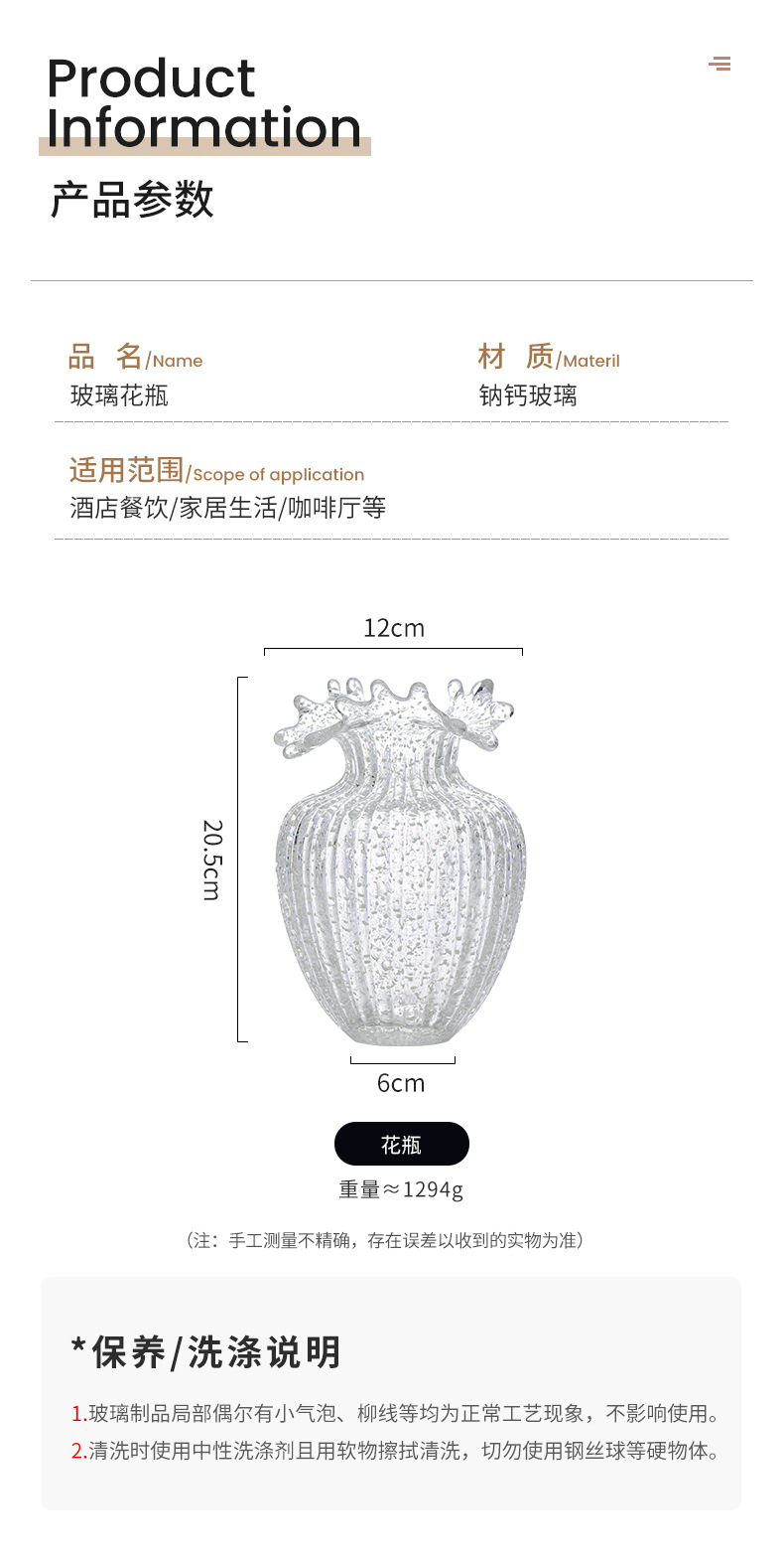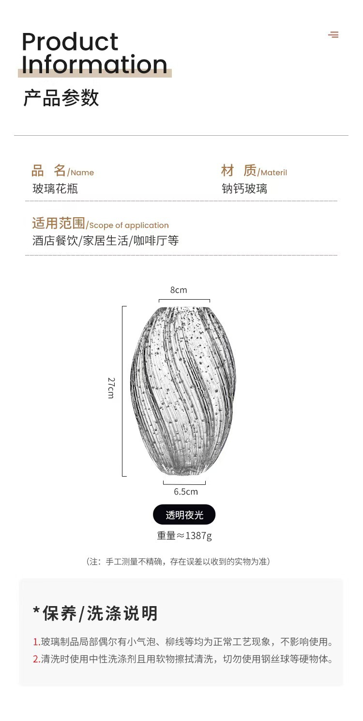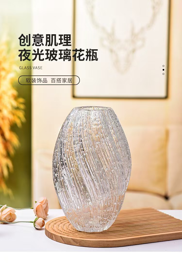 새로운 Maltose 투명한 빛나는 유리 꽃병 홈 럭셔리 간단한 고급 감각 홈 수경 꽃병 장식 장식품