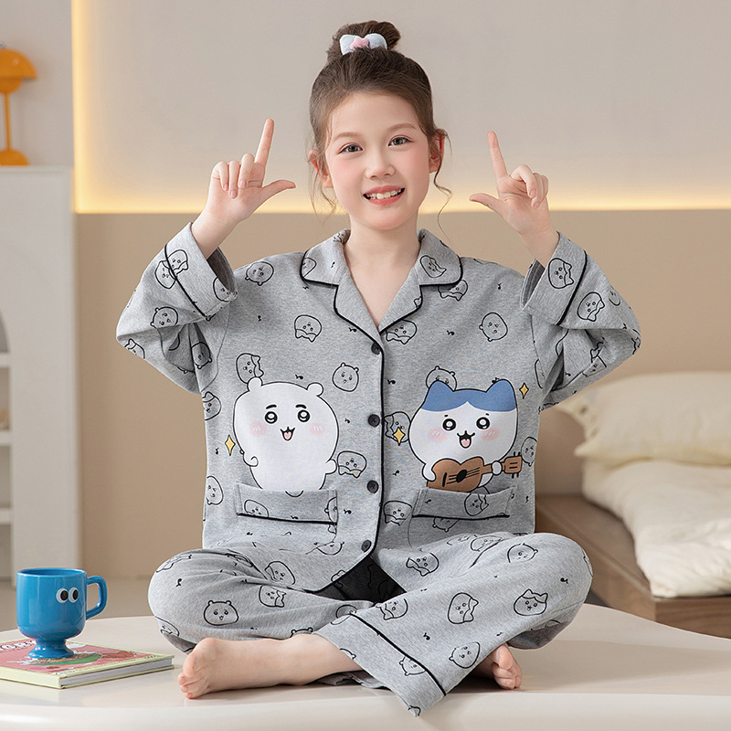 엄마와 딸 잠옷 2024 그물 붉은 봄과 가을 면화 어머니와 딸 긴 소매 얇은 바지 소녀 부모 자식 집 옷