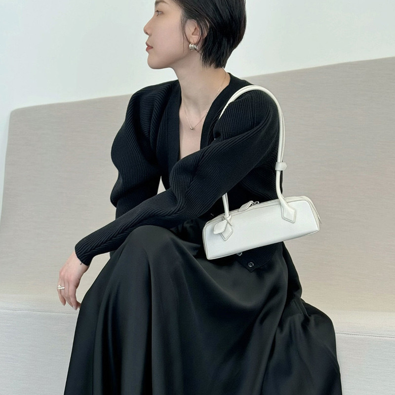 프랑스 틈새 소시지 가방 빈티지 언더암 바게트 가방 정품 가죽 여성 핸드백 캐주얼 통근 올 매치 숄더 백