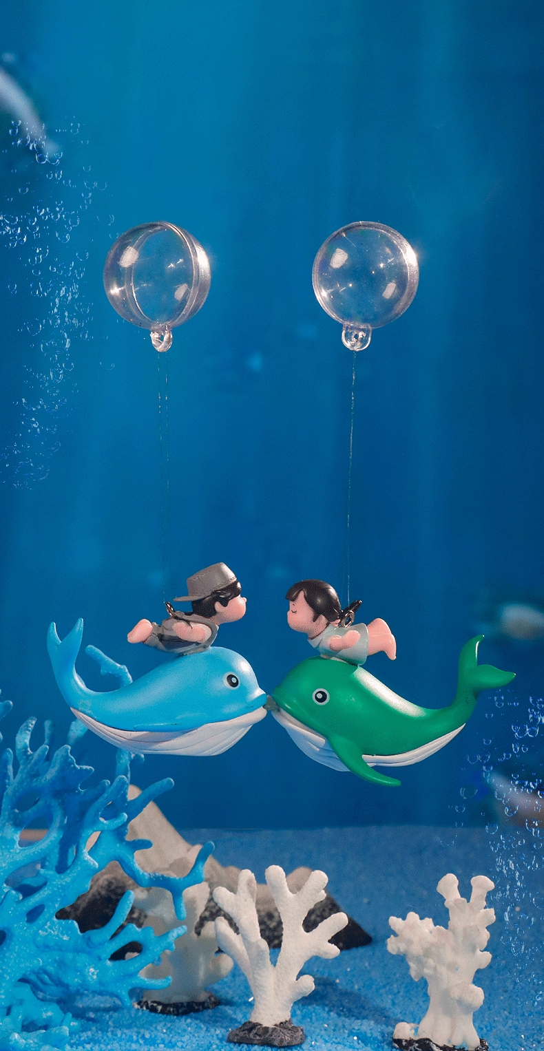 물고기 탱크 수족관 조경 장식 장식 장식 인테리어 돌고래 커플 장식 창조적 인 풍경 장식스토어 가기