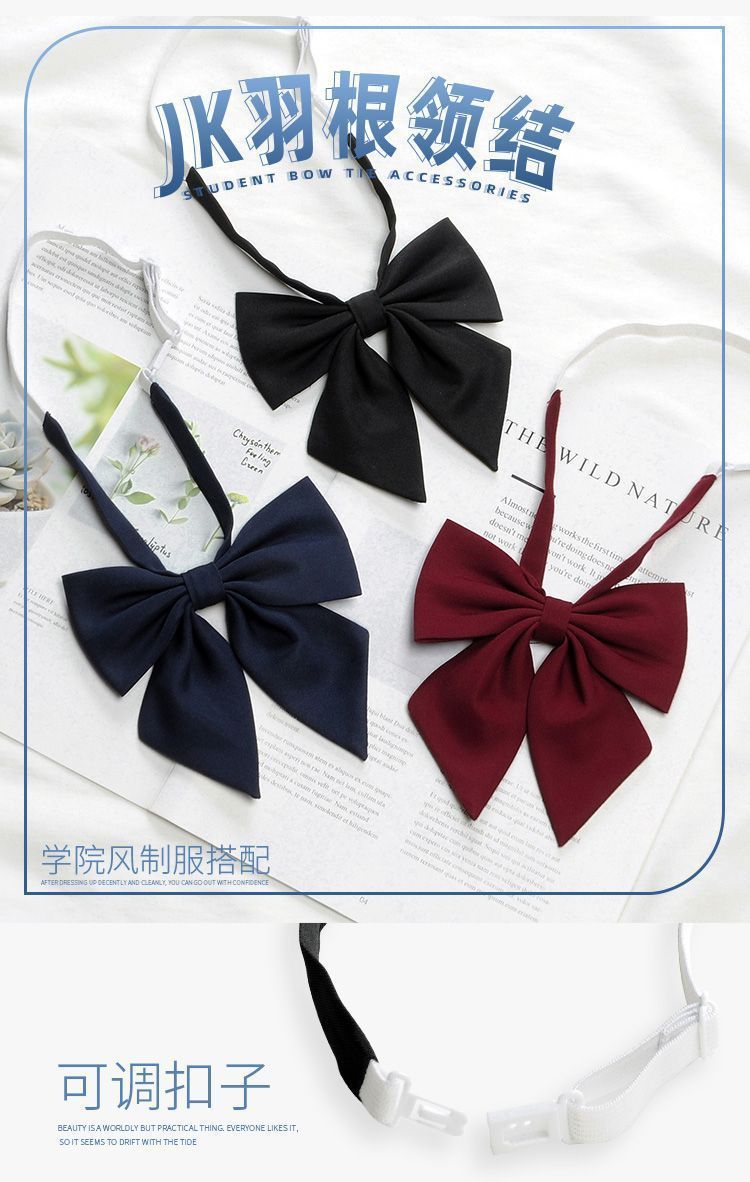일본 JK 솔리드 컬러 오비큐 깃털 뿌리 나비 넥타이 여성 대학 스타일 학생 졸업 사진 활 칼라 꽃 선원 의류 액세서리