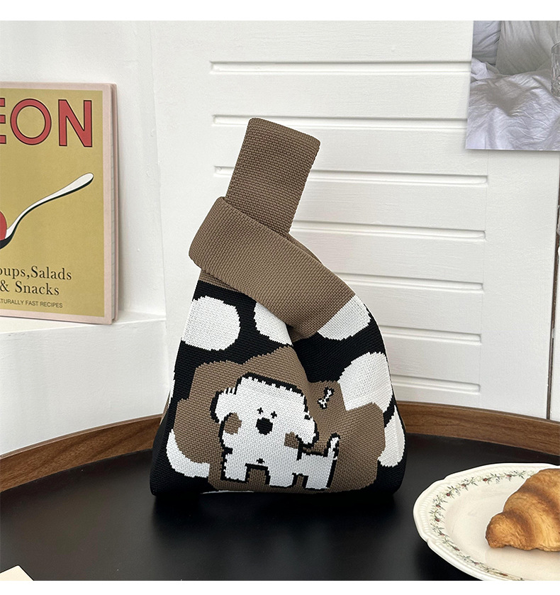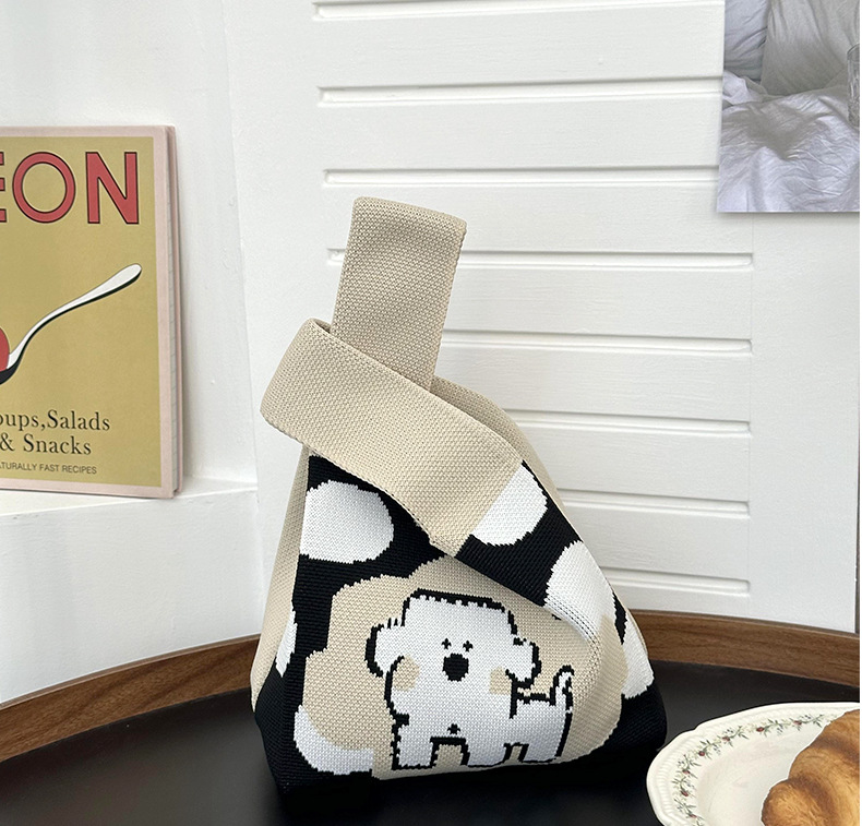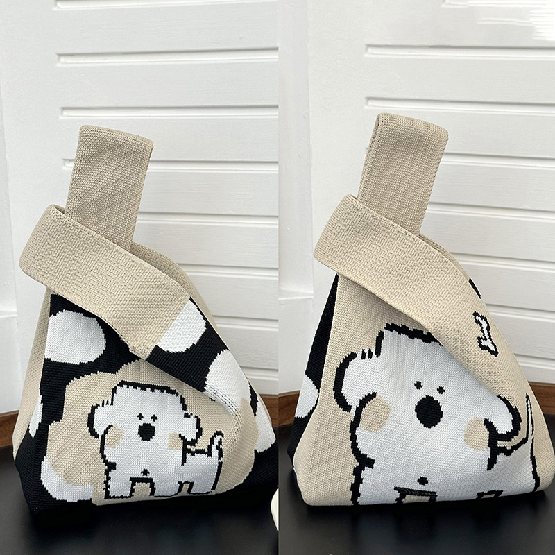 작은 사각 가방 여성 핸드백 틈새 디자인 새로운 대용량 텍스트 강아지 니트 핸드 숄더 크로스 바디 백