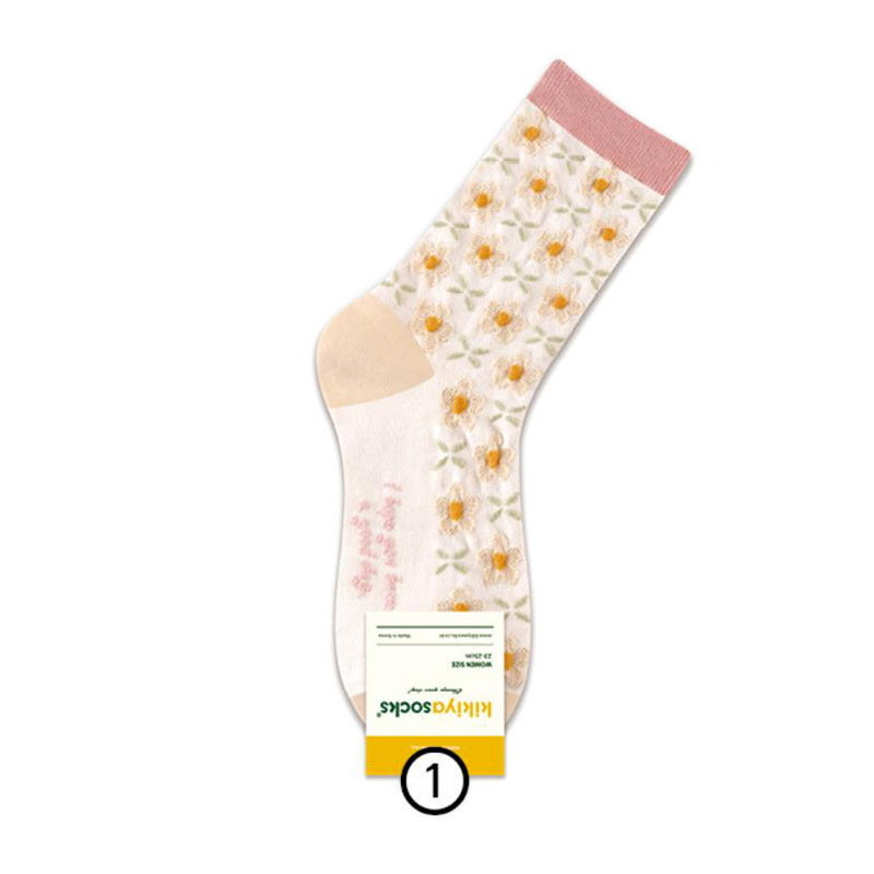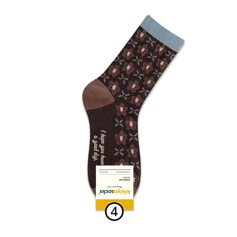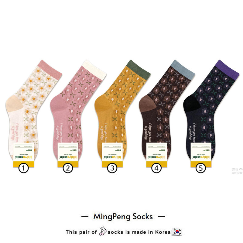 한국 여성 면 양말 동쪽 게이트 키키키야 가을 새로운 구호 작은 꽃 복고풍 식물 꽃 캐주얼 양말스토어 가기