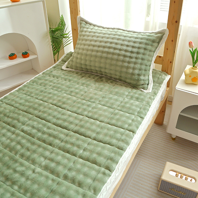2024 버블 벨벳 매트리스 밀크 벨벳 침대 패드 토끼 벨벳 매트리스 학생 업 롤러드 침대 커버 기숙사 단일 두꺼운 담요