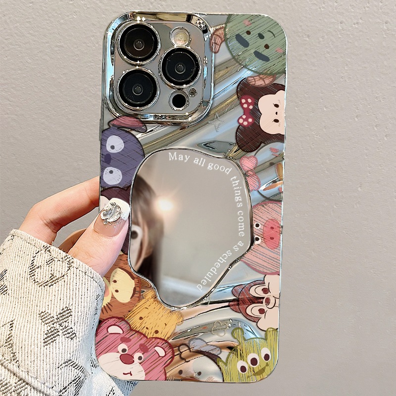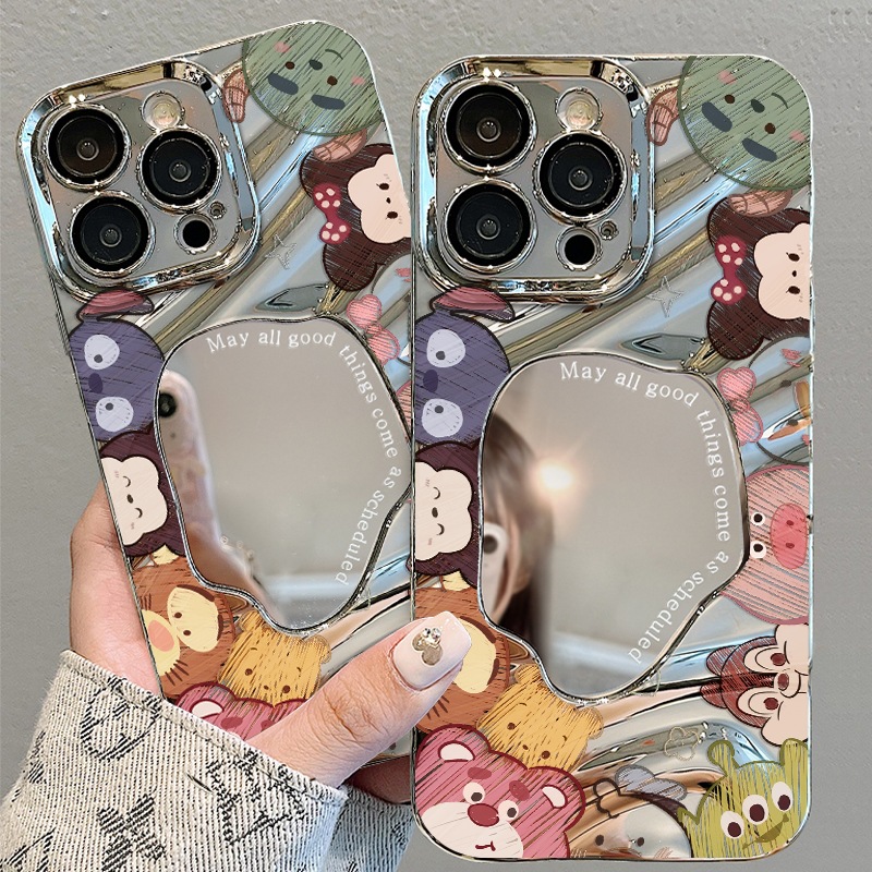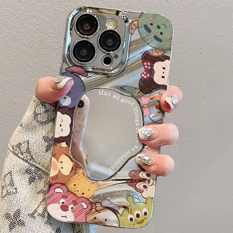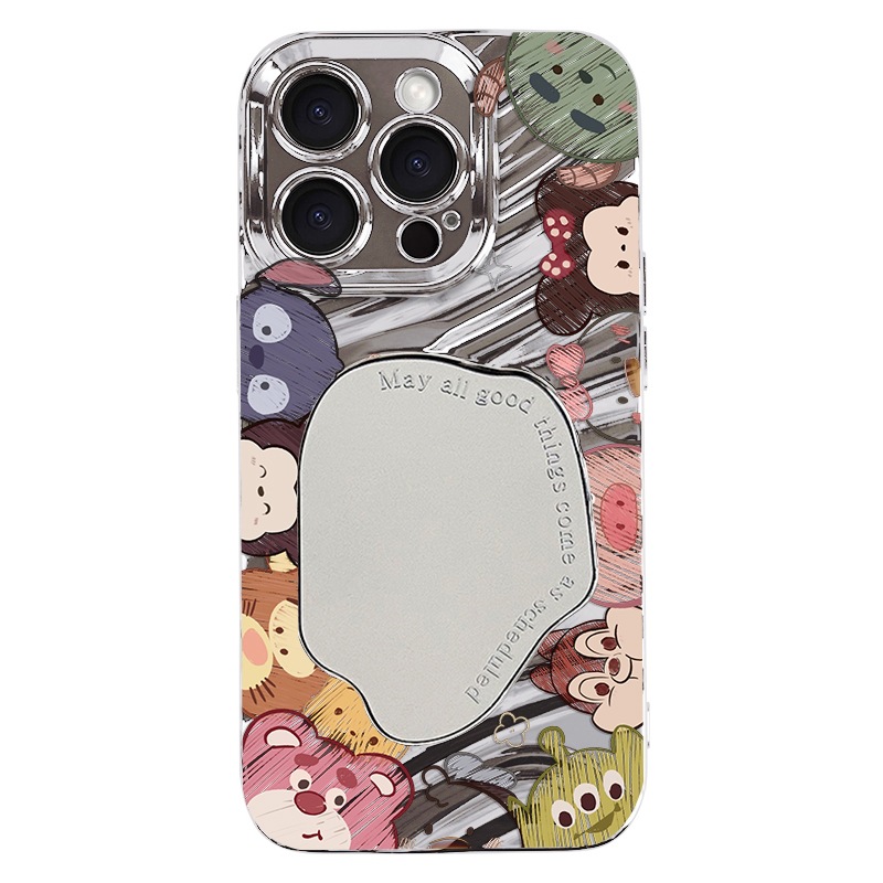 애플 15 전화 케이스 IP14 전기 도금 실버 웨이브 폴드 미러 화웨이 명예 IP13 동물 낙서스토어 가기
