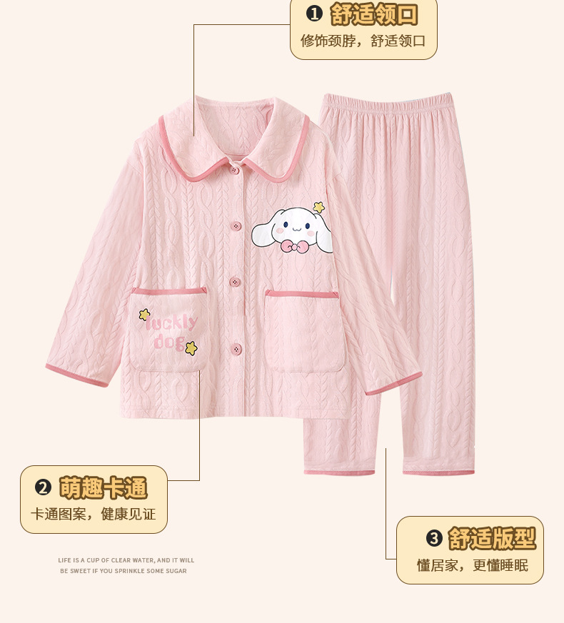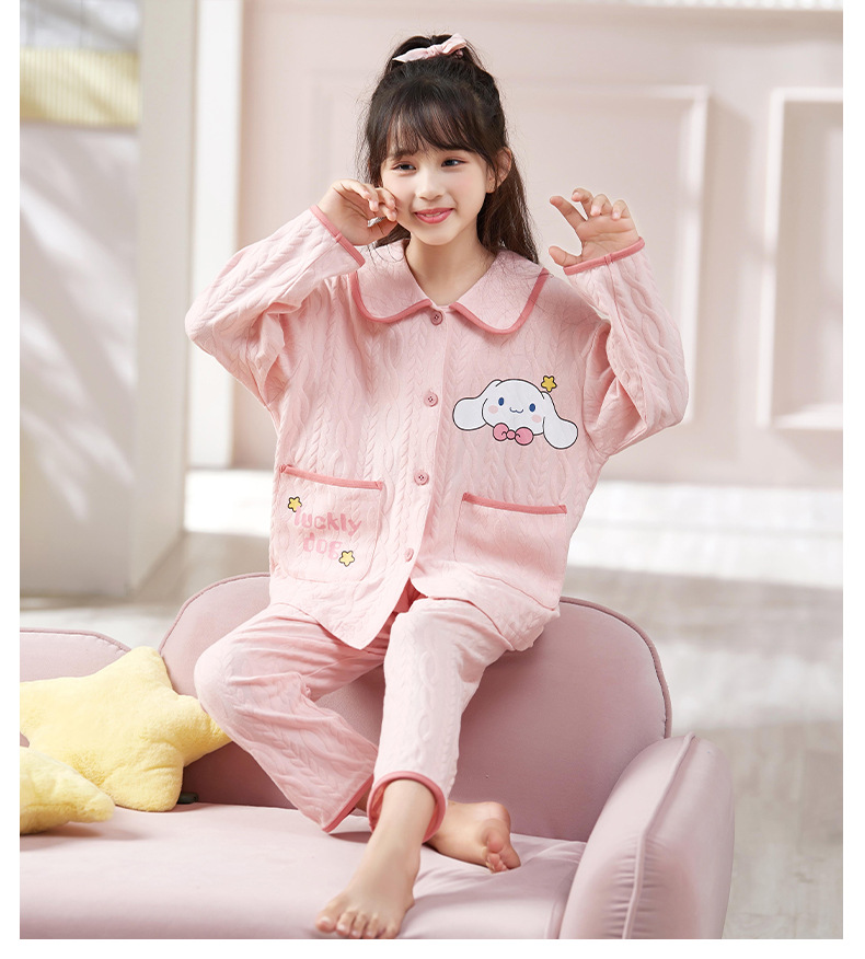 어린 이용 잠옷 2024 봄과 가을 새 여자들은 면화 긴 소매 카디건 홈 의류 세트 소녀 얇은 봄 옷을 빗질했습니다.스토어 가기