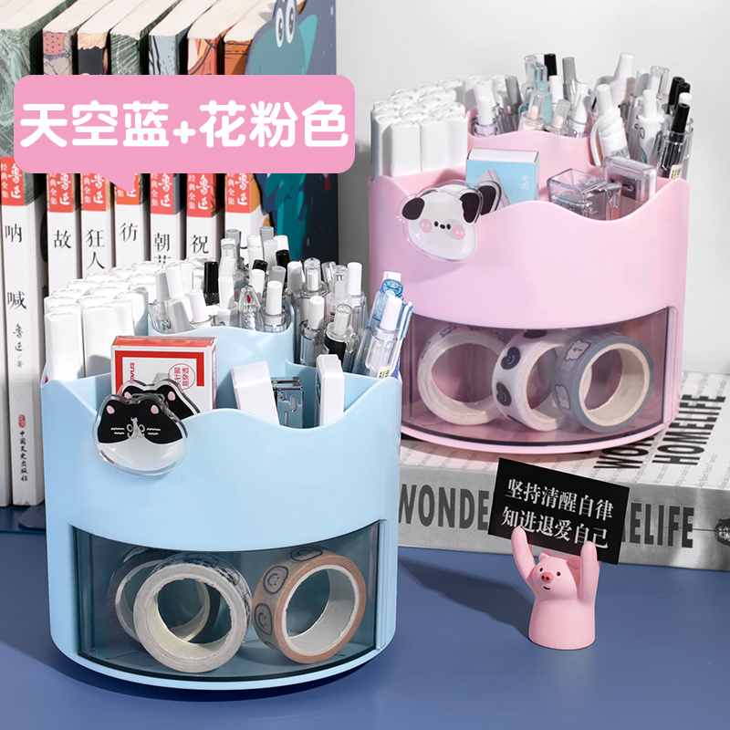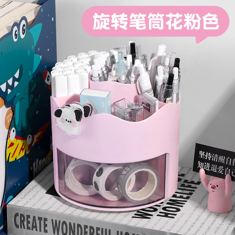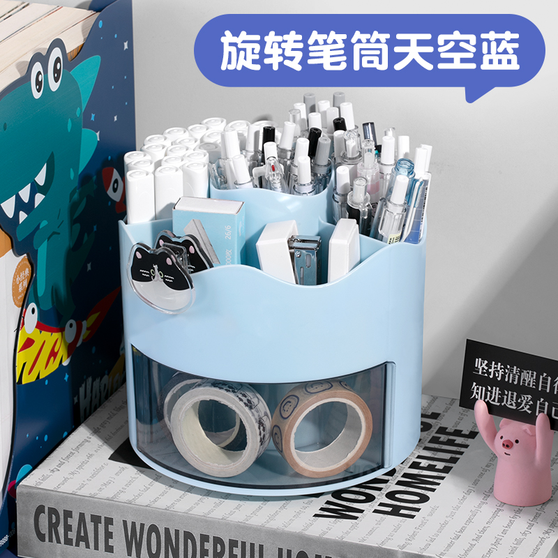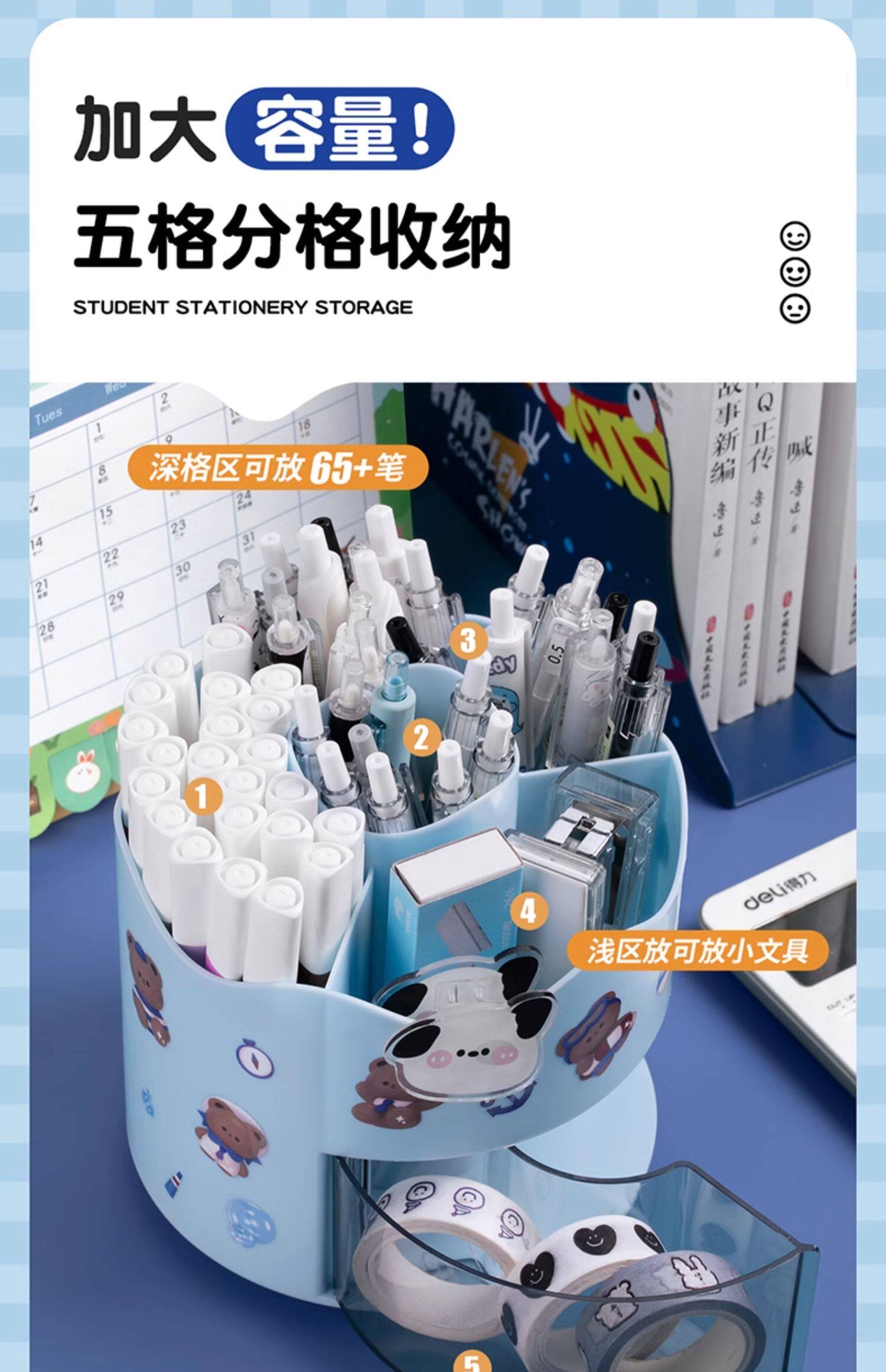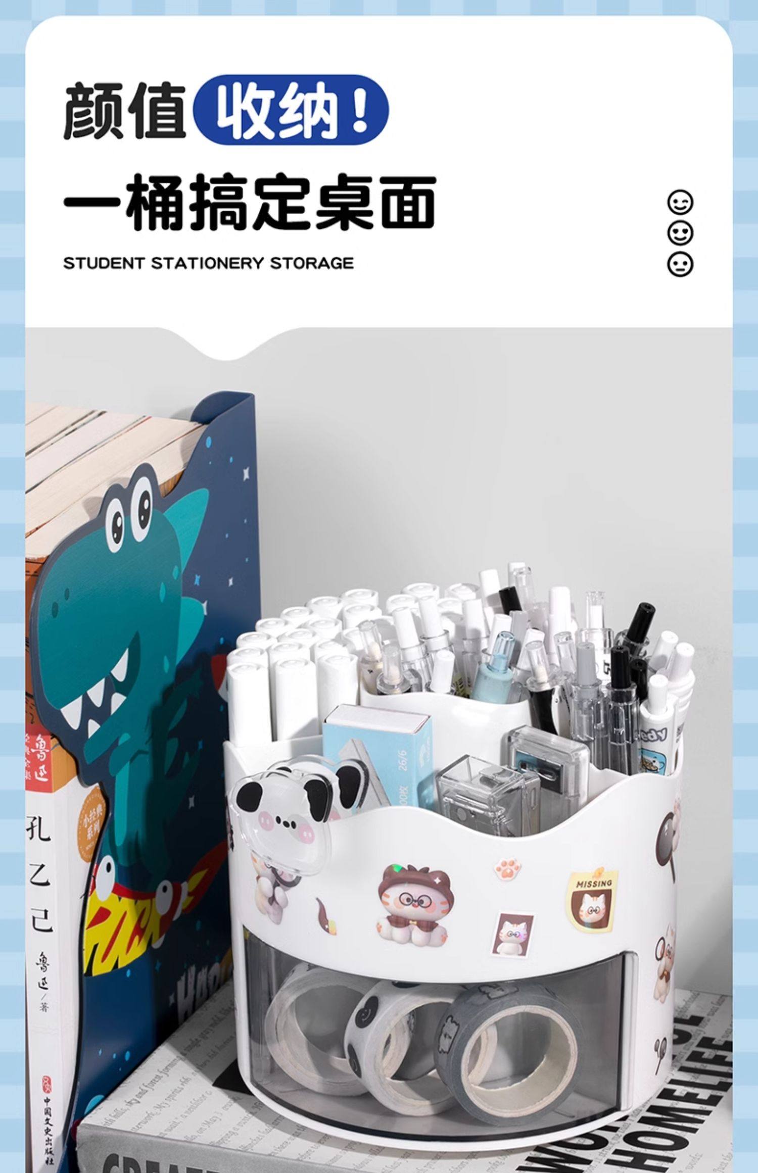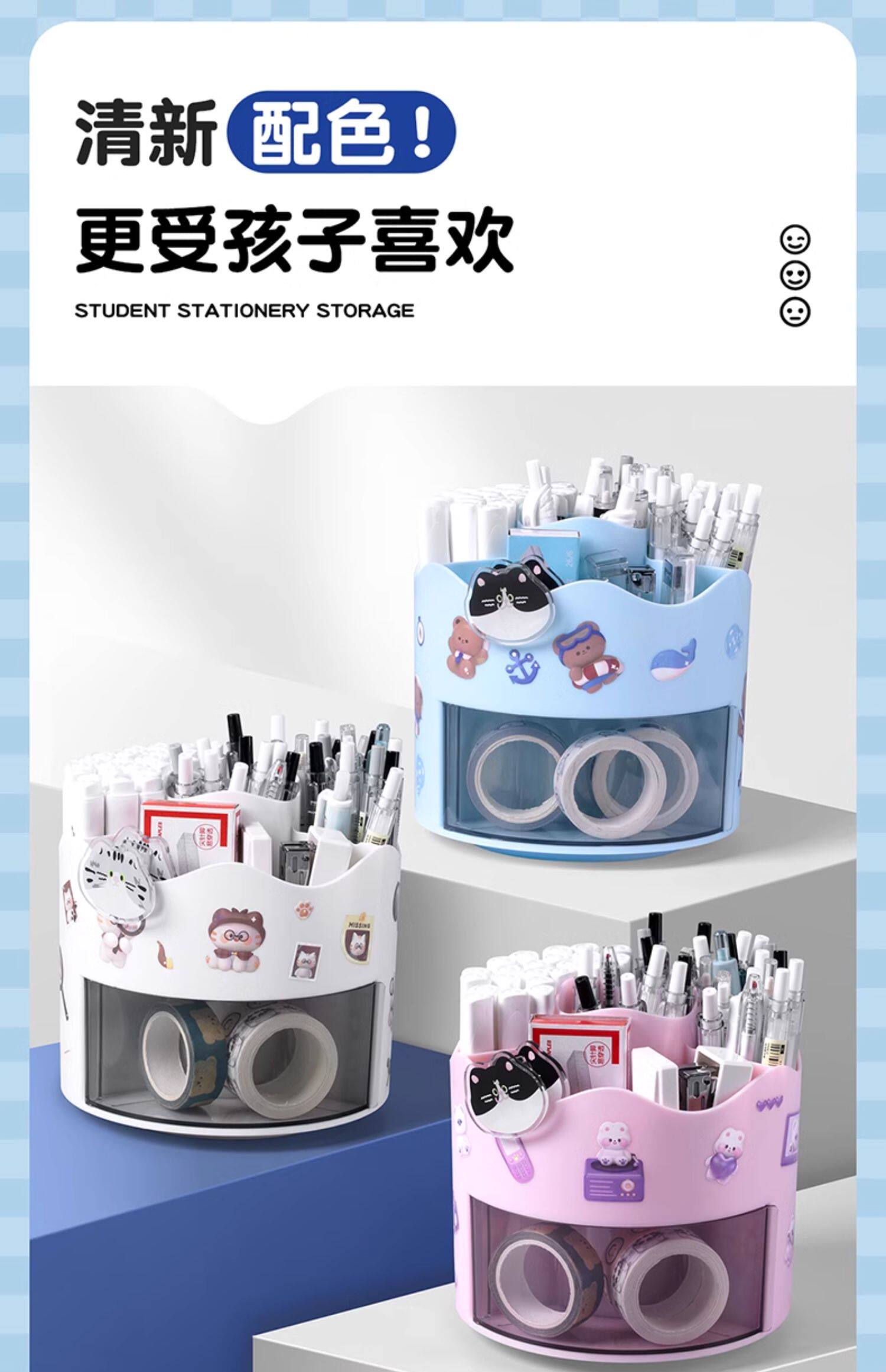 회전 펜 홀더 대용량 만화 귀여운 펜 홀더 높은 색상 가치 초등 학생 소년 소녀를위한 데스크탑 문구 보관 상자