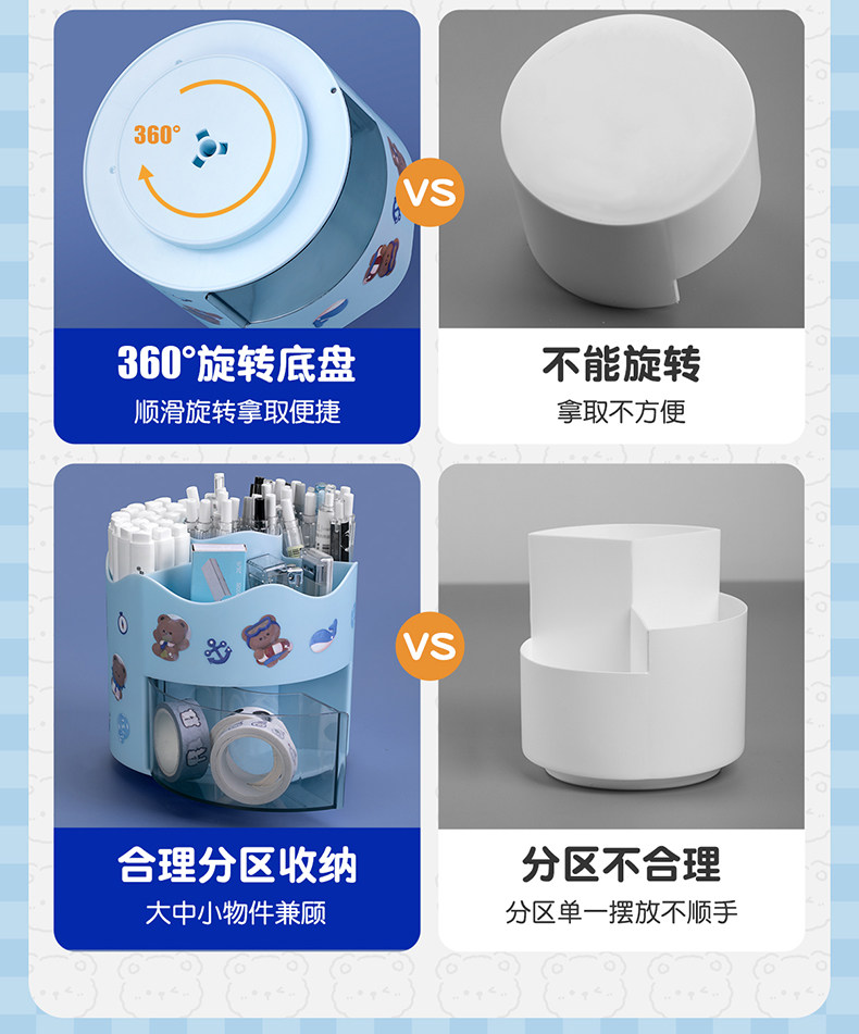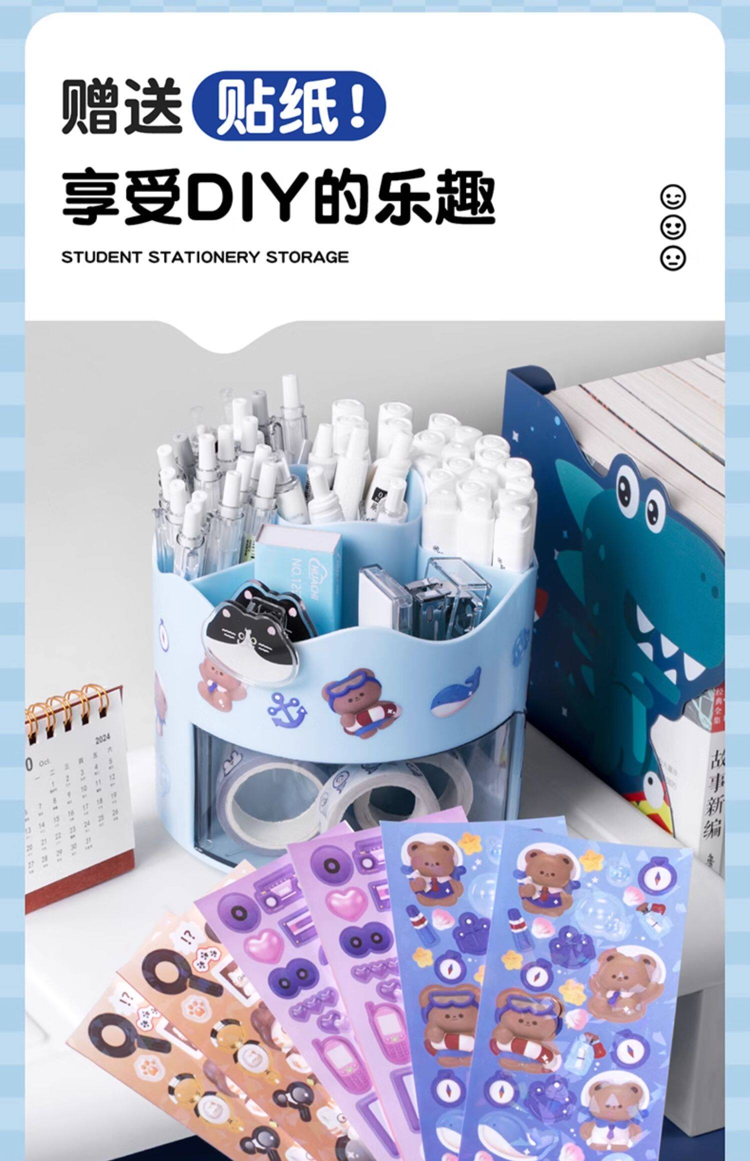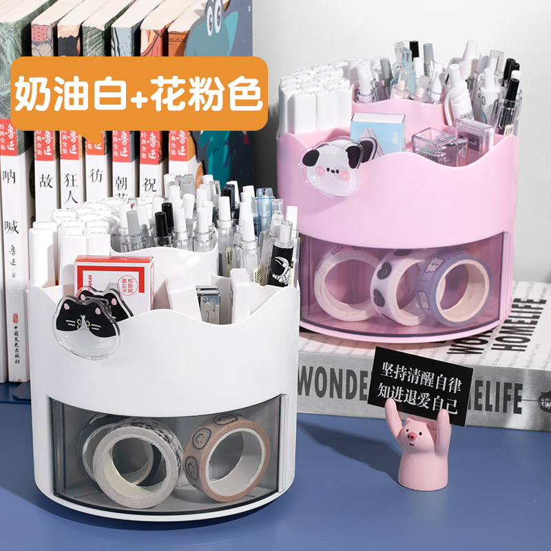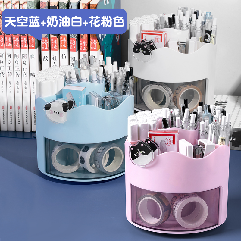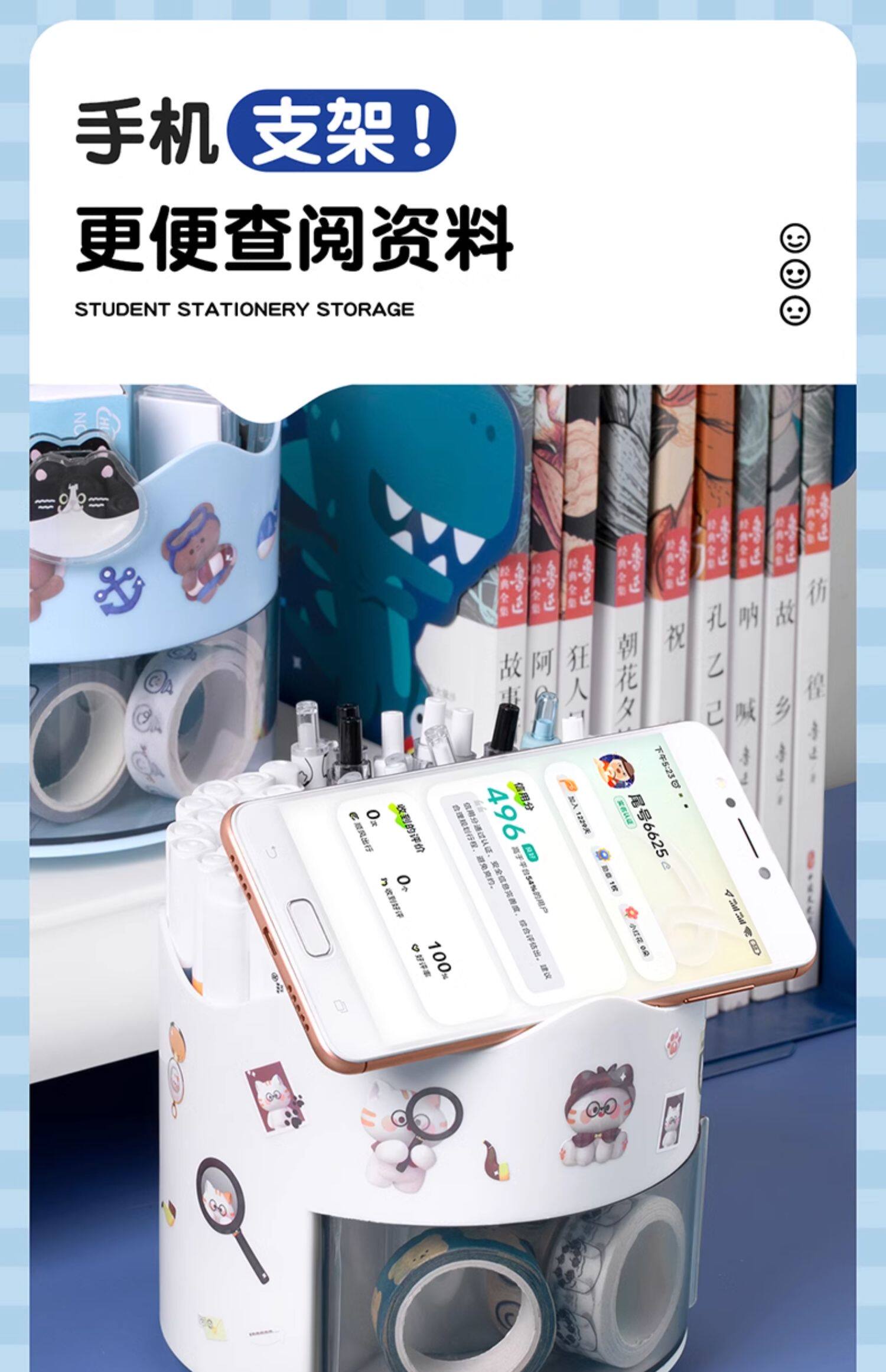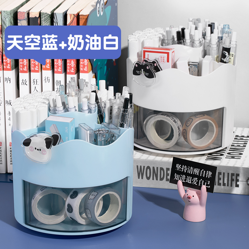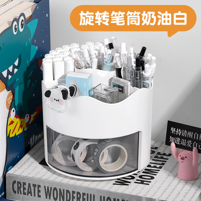 회전 펜 홀더 대용량 만화 귀여운 펜 홀더 높은 색상 가치 초등 학생 소년 소녀를위한 데스크탑 문구 보관 상자