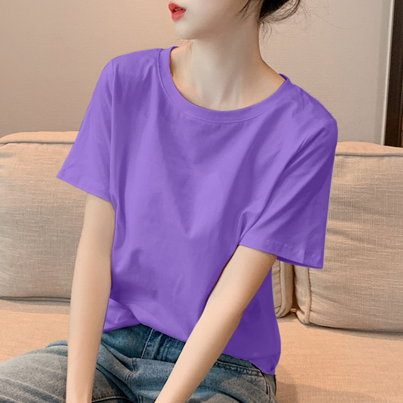 • 라이트 퍼플 라운드넥 반소매 코튼