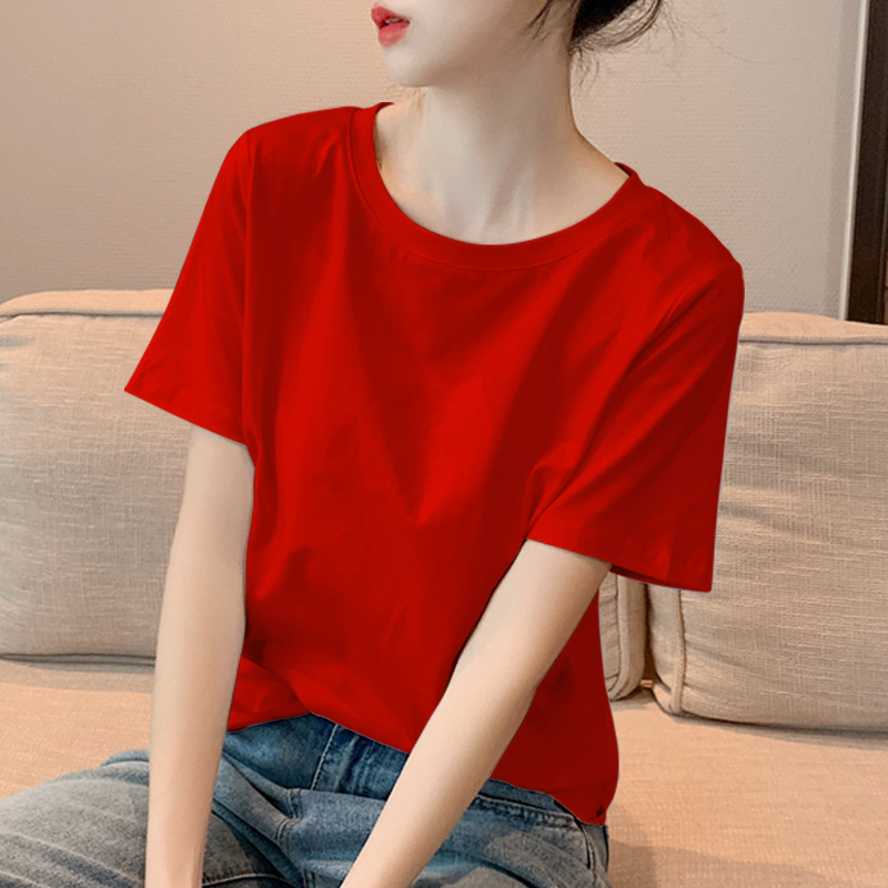 빅 레드 반팔 티셔츠 여성용 여름 뉴 루즈 티셔츠 퓨어 코튼 라운드 넥 캐주얼 반소매 심플코튼 탑