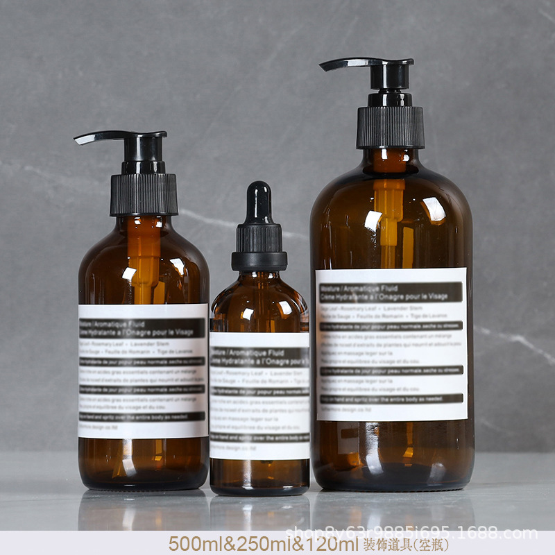 욕실 장식 장식품 Ins 스타일 화장품 에뮬레이션 분할 다크 브라운 유리 빈 병 모델 룸 욕실 소품