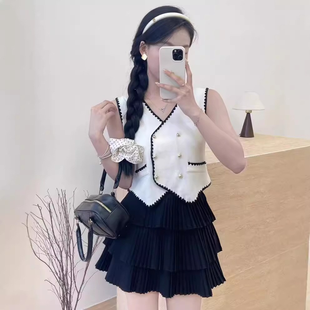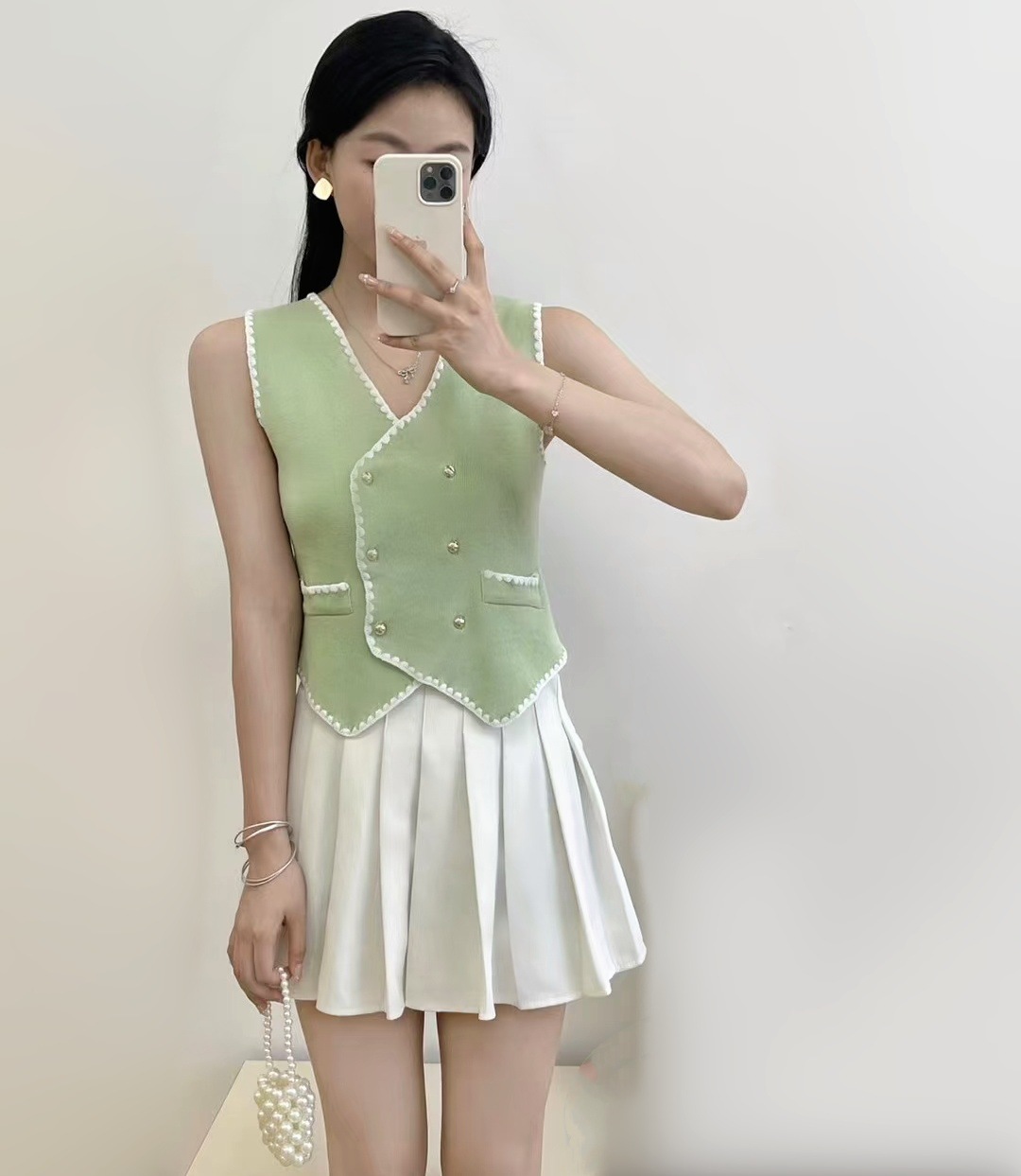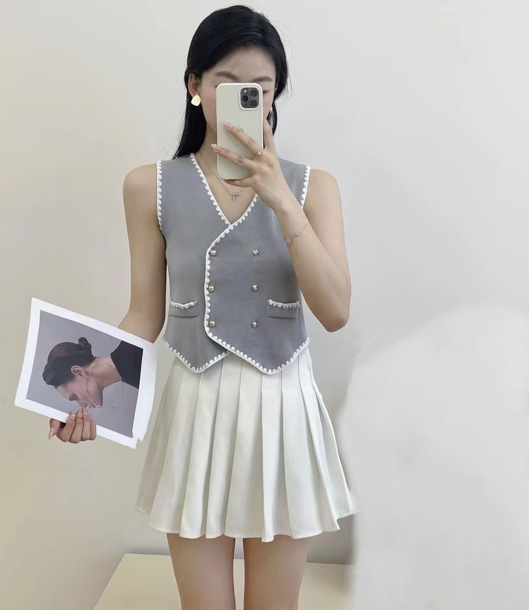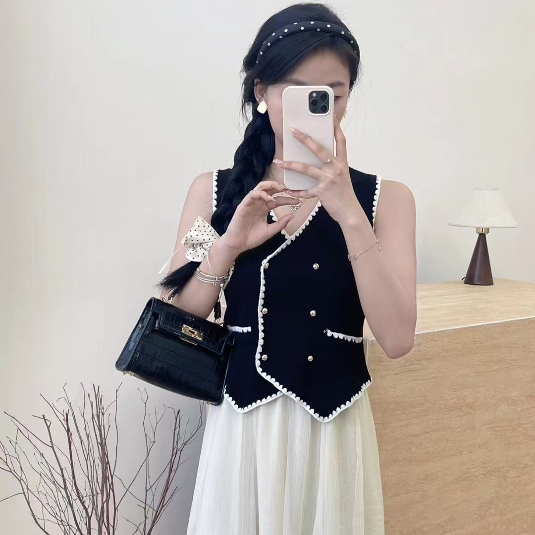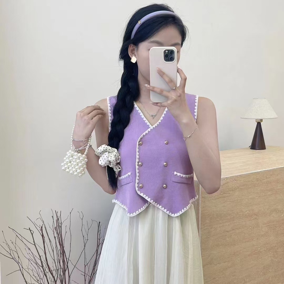 V-Neck 니트 조끼 코트 하이 엔드 센스 더블 브레스트 여성 가을 서양식 시대 감소 오버레이 민소매 조끼 탑