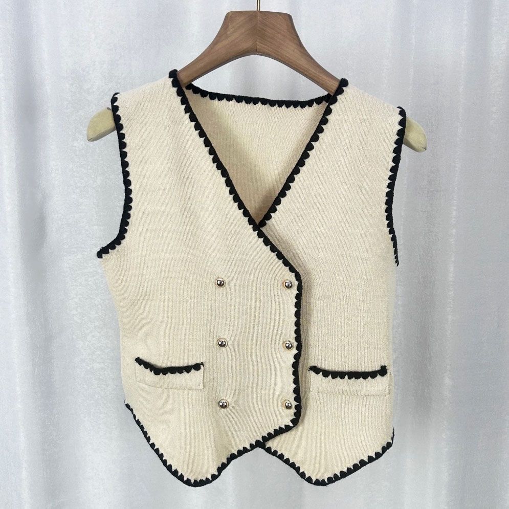 V-Neck 니트 조끼 코트 하이 엔드 센스 더블 브레스트 여성 가을 서양식 시대 감소 오버레이 민소매 조끼 탑스토어 가기