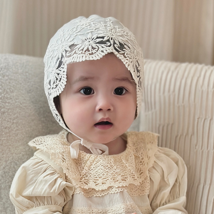 한국 스타일 아기 모자 봄과 가을 레이스 레이스 공주 아기의 양산 모자 여름 얇은 여성 코트 모자