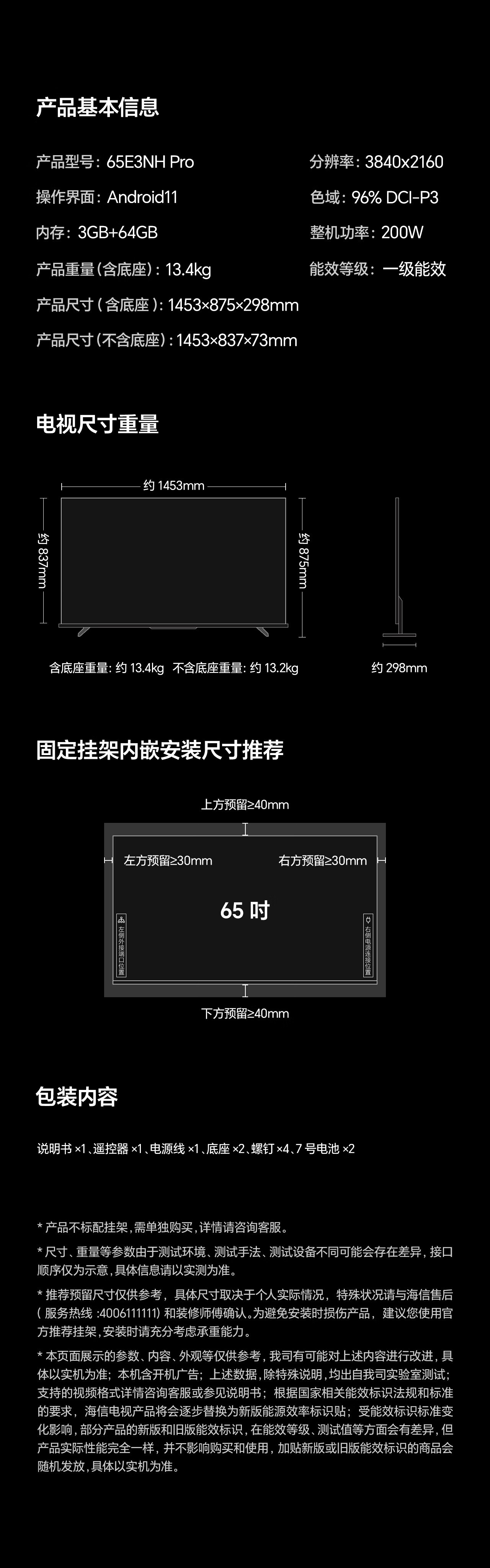 • 65inch 【3GB+64GB 264Hz】65E3NH-PRO