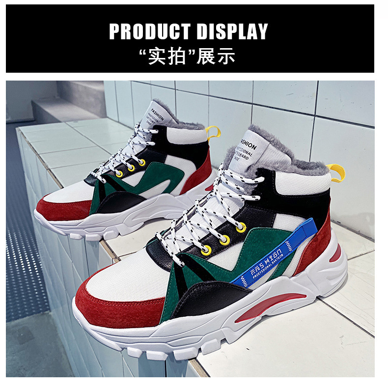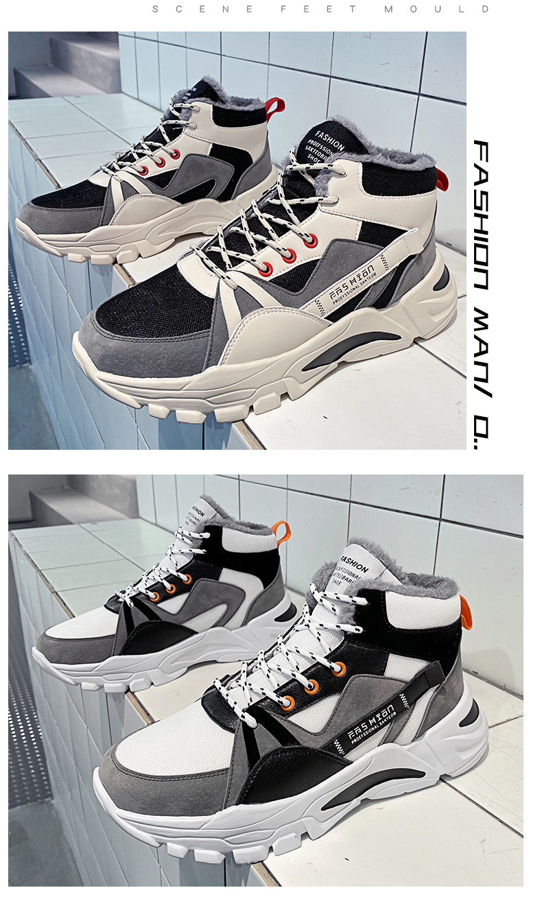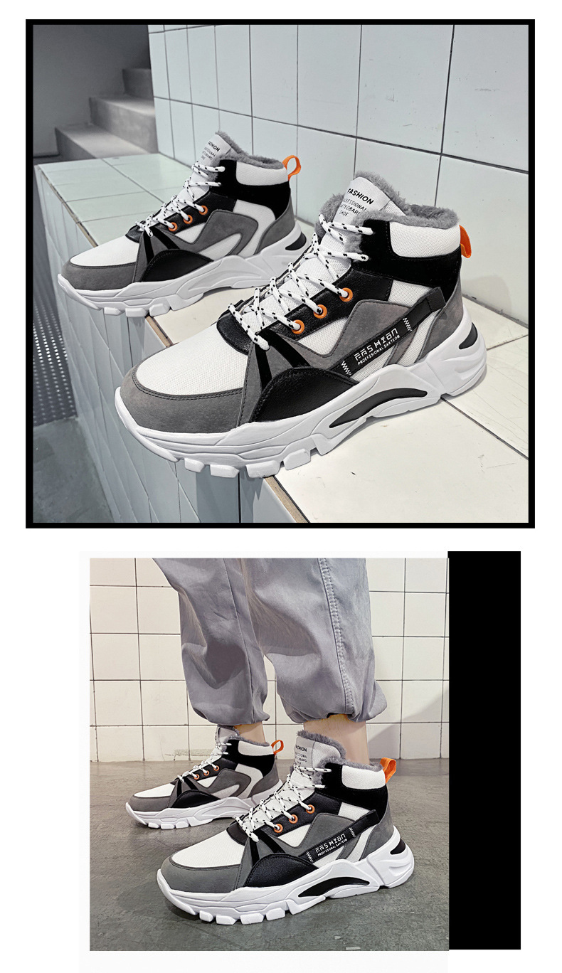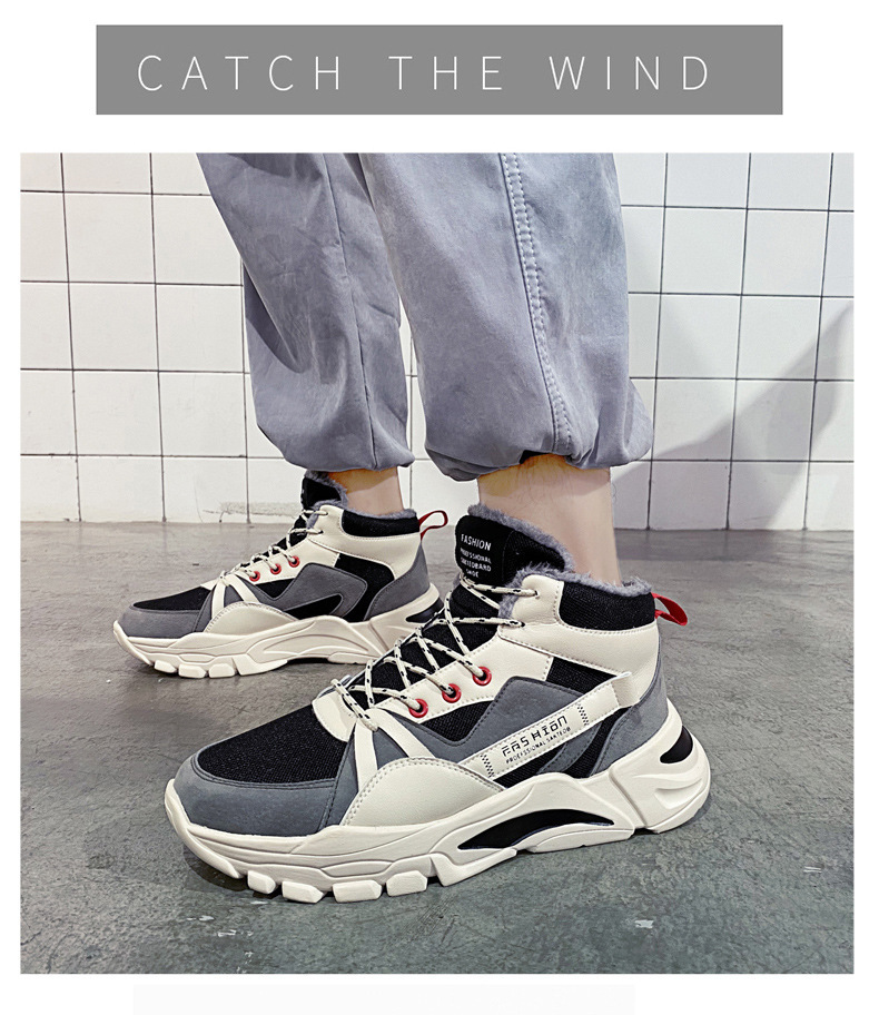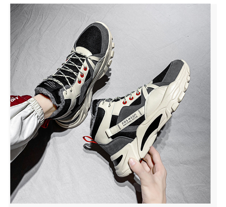 겨울 남성 신발 새로운 스타일 토레 신발 기모 따뜻한 동북 남성 캐주얼 두꺼운 단독 남성용 미드 하이 탑 신발