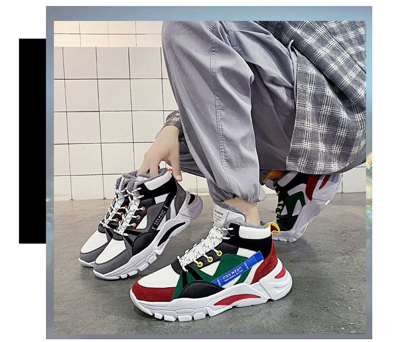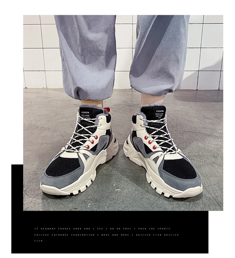 겨울 남성 신발 새로운 스타일 토레 신발 기모 따뜻한 동북 남성 캐주얼 두꺼운 단독 남성용 미드 하이 탑 신발스토어 가기