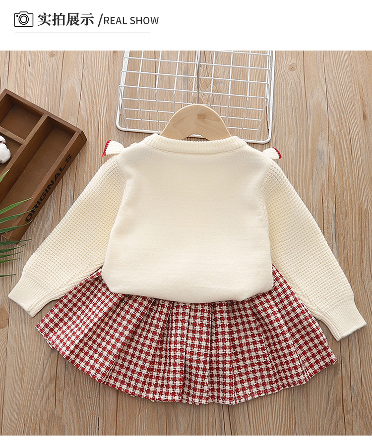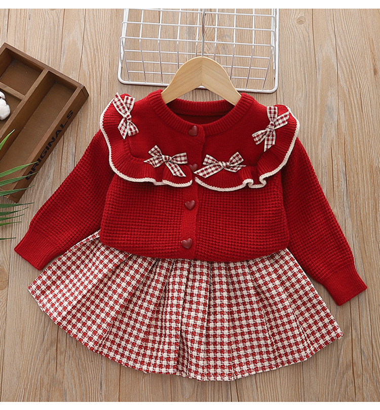 소녀 세트 2024 가을/겨울 새로운 빨간 아기 소녀 공주 원피스 어린이 니트 스웨터 2 피스 세트스토어 가기