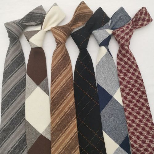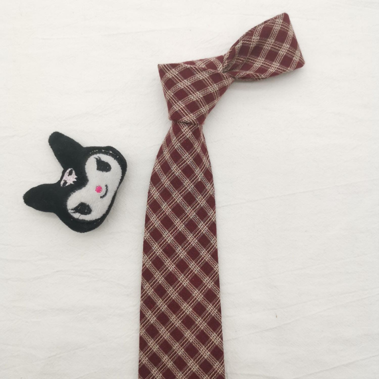 손으로 넥타이 여성용 jk 코튼 커피 다크 브라운 실버 회색 줄무늬 체크 무늬 dk 대학 스타일 7cm 남성용 트렌디 한 Ins 장식스토어 가기