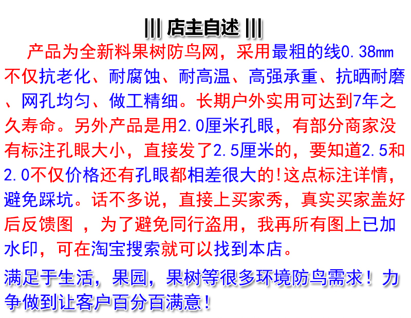 • 7m 폭 * 7m 길이(높이 2m 과일 나무에 적용 가능) 구멍 2.0CM 내구성 모델