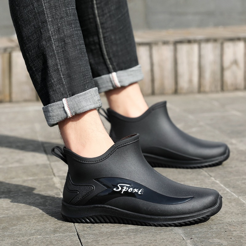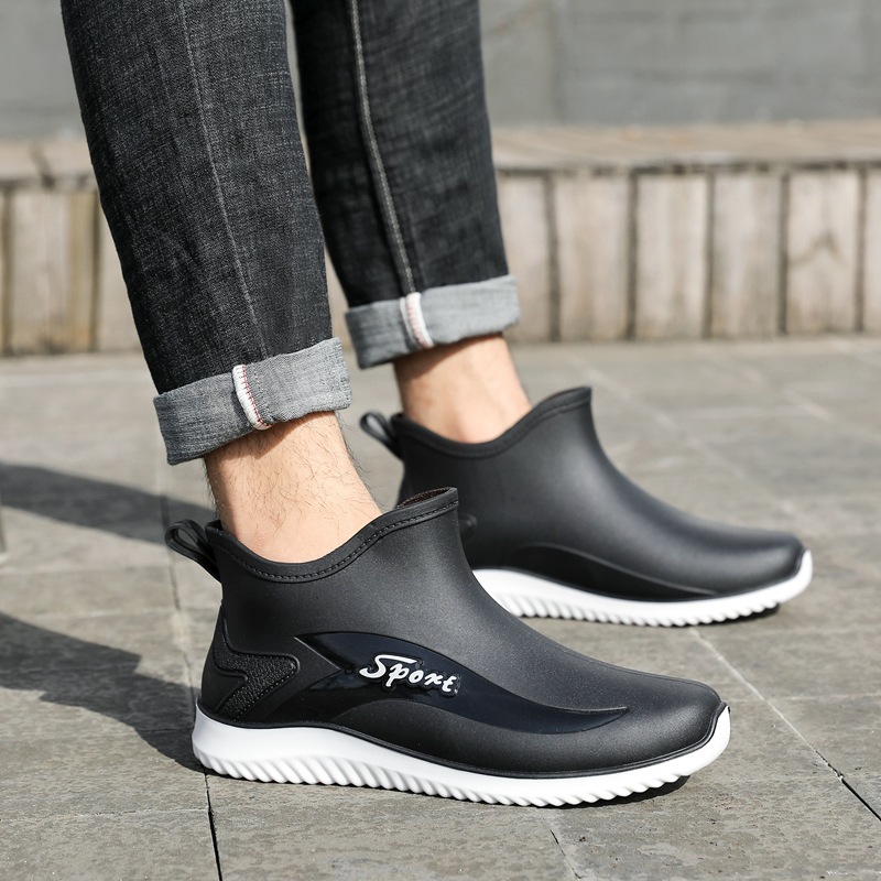 장화 남성 패션 미끄럼 방지 방수 신발 야외 낚시 신발 세차 주방 작업 고무 신발 남성 짧은 장화