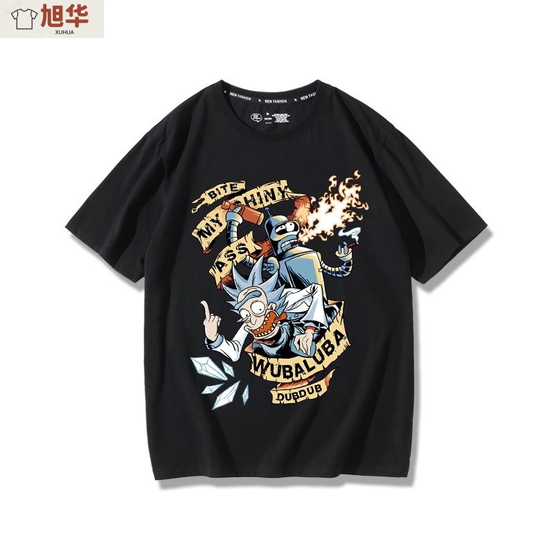 Fly-out Future 공동 브랜드 Rick and Morty 티셔츠 반팔 남성 트렌디 브랜드 인스 타 올 매치 애니메이션 주변 반소매